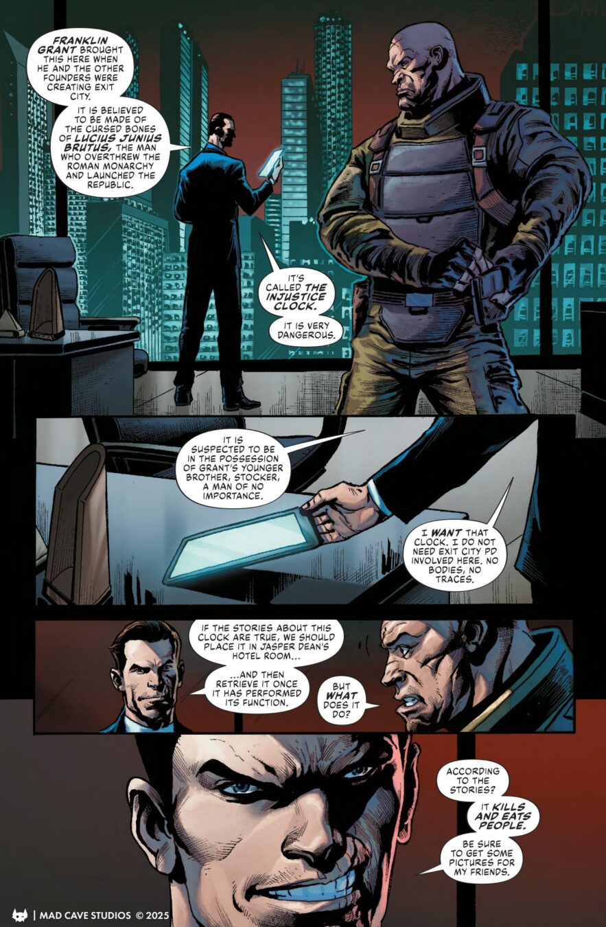 When Axel Black, an obsessive tech billionaire and head of the sinister Order of Nine, sends his operatives to Exit City in search of a dangerous mystical artifact, only a team of unlikely allies from different corners of the underworld can prevent an apocalyptic catastrophe: VELVETEEN, the elite rogue assassin hellbent on revenge; McCORMICK & MILLER, two detectives keeping peace in a lawless city; and OWEN BLACKWOOD, a monster hunter duty-bound to stop evil. But tensions are mounting, and time is running out!