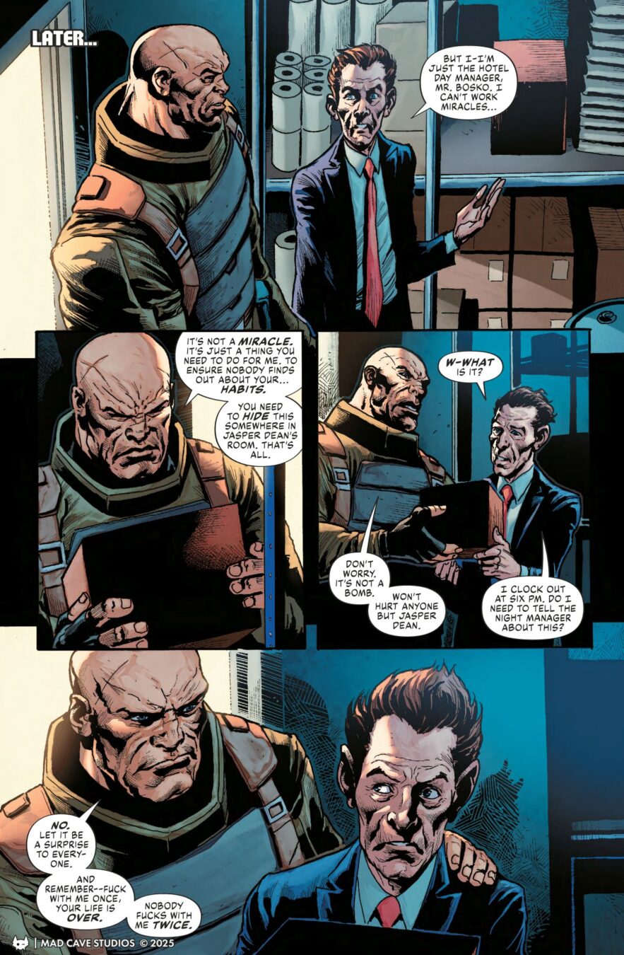 ENDLESS NIGHT is Mad Cave’s miniseries event of Summer 2025, a genre-smashing collision of archetypal heroes by celebrated writer MARK LONDON (Battlecats, Hunt.Kill.Repeat.) and acclaimed artist TOM DERENICK (Justice League), set in the universe of dark conspiracies, hard-boiled mystery, and unnatural menace known as UNDERWORLD!