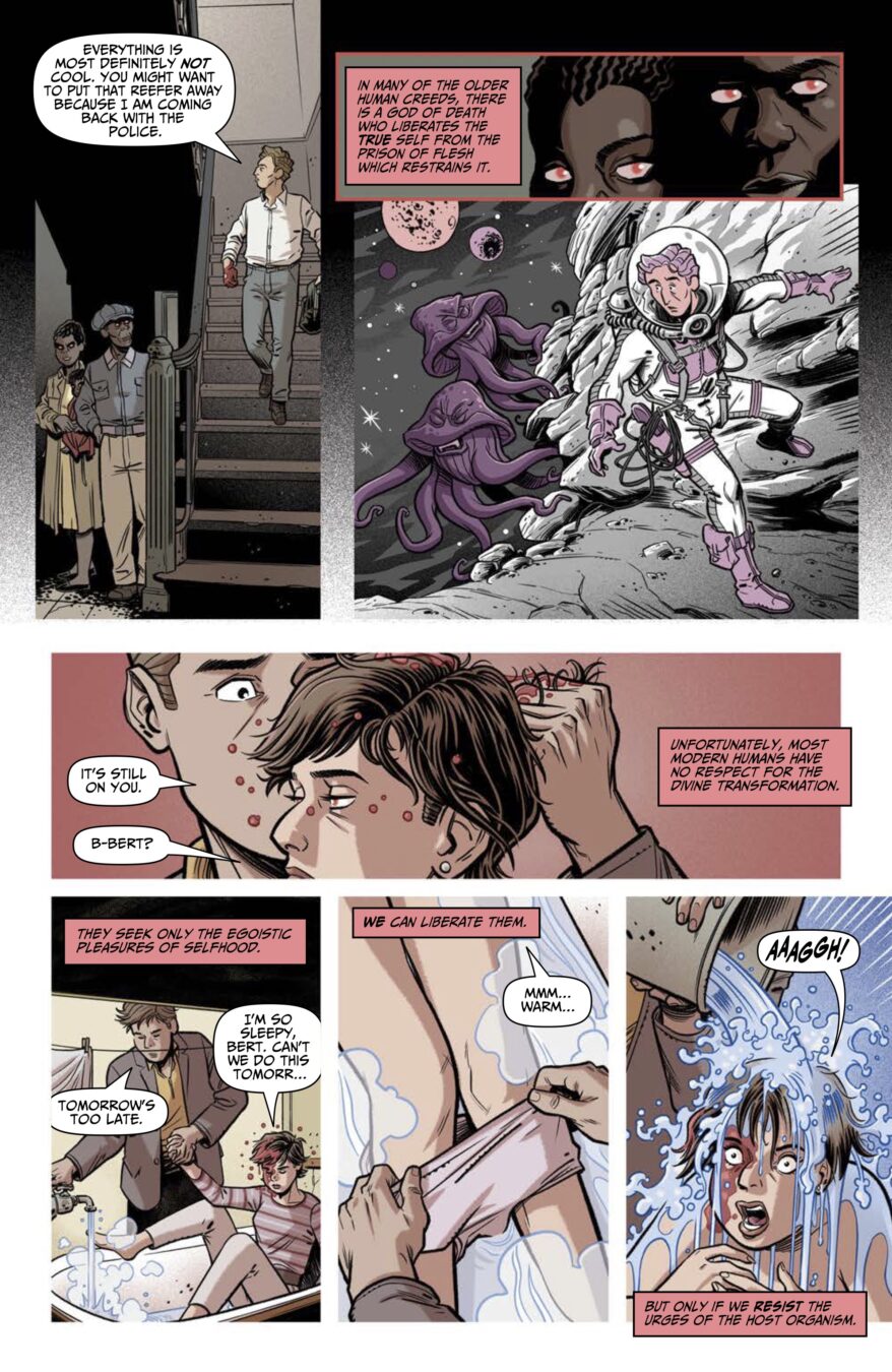 Married to a 1950s science fiction writer possessed by an extraterrestrial being, Ziva begins—shockingly—to explore the outrageous possibility that their romance has a future. Featuring an AHOY First: a “Psychedelic” incentive cover by the same artist as the main cover! Have WE been taken over by the “mycelial invasion,” too?