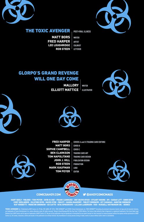 Continuing the hit reinvention of the classic film/animation series! In the wake of the catastrophic chemical spill in Tromaville, the corporation responsible dispatches its private army, the armored Radiation Rangers, to violently contain the PR damage—until Toxie uncovers the soldiers’ frightening secret!