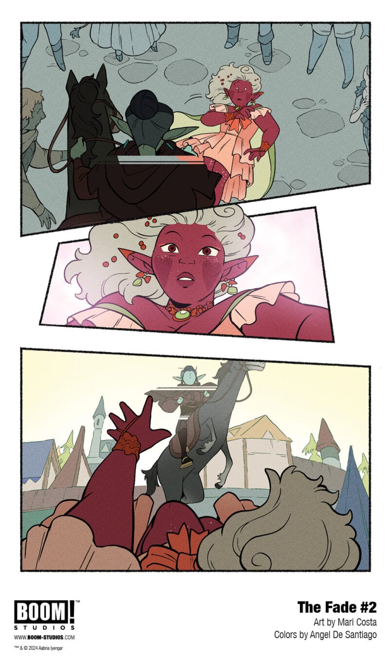 BOOM! Studios today revealed a first look at THE FADE #2, the next issue from webseries and TTRPG star Aabria Iyengar (Critical Role, Dimension 20), fan favorite webcomic artist Mari Costa (Life of Melody), colorist Angel De Santiago, and letterer Jim Campbell. Readers will discover new realms and adventures in the magical coming-of-age story from the award-winning BOOM! Box imprint in December 2024.