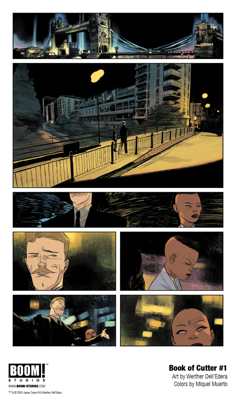BOOK OF CUTTER is the newest release from BOOM! Studios’ eponymous imprint, home to critically acclaimed original series, including BRZRKR by Keanu Reeves, Matt Kindt, and Ron Garney; Something is Killing the Children by James Tynion IV and Werther Dell’Edera; bestselling horror anthology Hello Darkness; Grim by Stephanie Phillips and Flaviano; Stuff of Nightmares by R.L. Stine and A.L. Kaplan; A Vicious Circle by Mattson Tomlin and Lee Bermejo; Ghostlore by Cullen Bunn and Leomacs; Rare Flavours by Ram V and Filipe Andrade; Underheist by David and Maria Lapham; Animal Pound by Tom King and Peter Gross; Minor Arcana by Jeff Lemire; Vicarious by Ryan Parrott and Eleonora Carlini; The Creeping Below by Brian Azzarello and Vanesa Del Rey; and the upcoming Bronze Faces by Shobo, Shof, and Alexandre Tefenkgi; In Bloom by Michael W. Conrad and John J. Pearson; and When I Lay My Vengeance Upon Thee by Gus Moreno and Jakub Rebelka. The imprint also publishes popular licensed properties, including Dune: House Corrino from Brian Herbert, Kevin J. Anderson, and Simone Ragazzoni; Power Rangers Prime by Melissa Flores and Michael YG; and The Expanse: Dragon Tooth by Andy Diggle, Rubine, and Francesco Pisa.