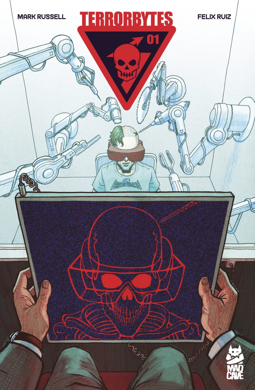 Mad Cave Studios is proud to announce TERRORBYTES, a chilling sci-fi horror anthology that unplugs the comforts of modern tech to expose the real cost beneath the surface. Co-written by Eisner, GLAAD, and Ringo Award-winner Mark Russell (The Flintstones, Superman: Space Age) and Mad Cave’s own CEO Mark London (Battlecats, Wolvenheart), this ongoing series launches Fall 2025 with a revolving cast of top-tier artists and storytellers—and a mission to make you question the very screens you’re reading from.