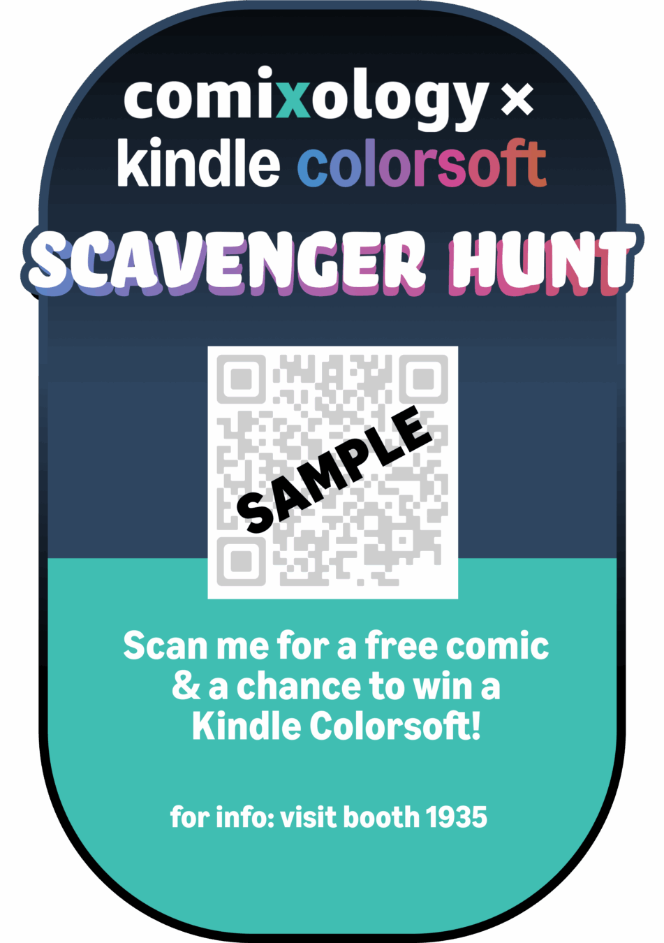 - The Comixology x Kindle Colorsoft Scavenger Hunt: Join the search to find all the QR codes at our publishing partners’ booths for a chance to win free digital comics, Kindle discounts, and be entered to win a Kindle device.