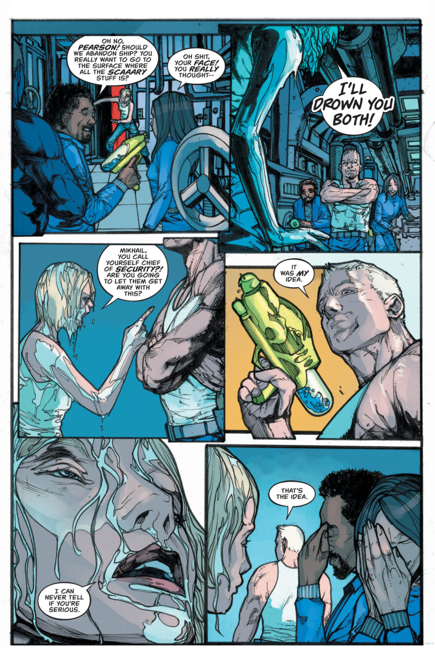“Since I was a kid, my favorite genre of films has always been horror—Slashers, body horror, found footage, and suspense in particular,” said Alex Sanchez. “If I wasn’t illustrating comics, I probably would be in the movie industry lending my talents in some visual effects department, somewhere. Not surprisingly, for the better part of the last couple of decades, a large portion of my work in the comic book industry has been drawing books with a suspenseful theme. These are the kinds of books that pique my interest. So, when I was presented the opportunity to draw Crush Depth, I jumped at the chance because I knew I would immensely enjoy building the world with Tim and DB.”