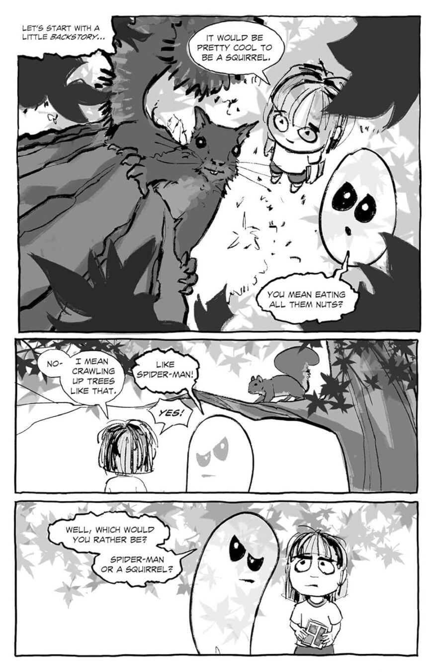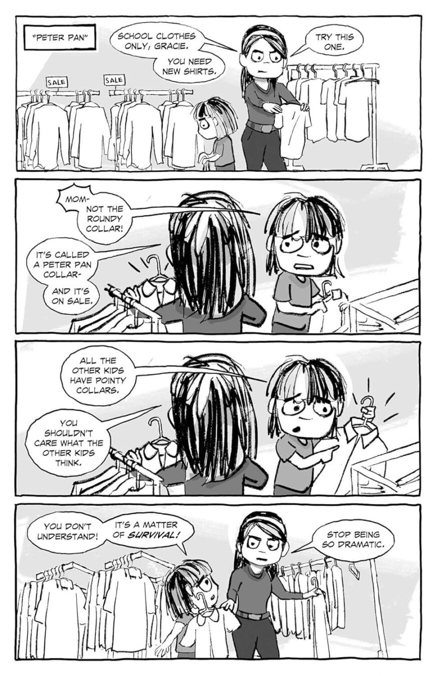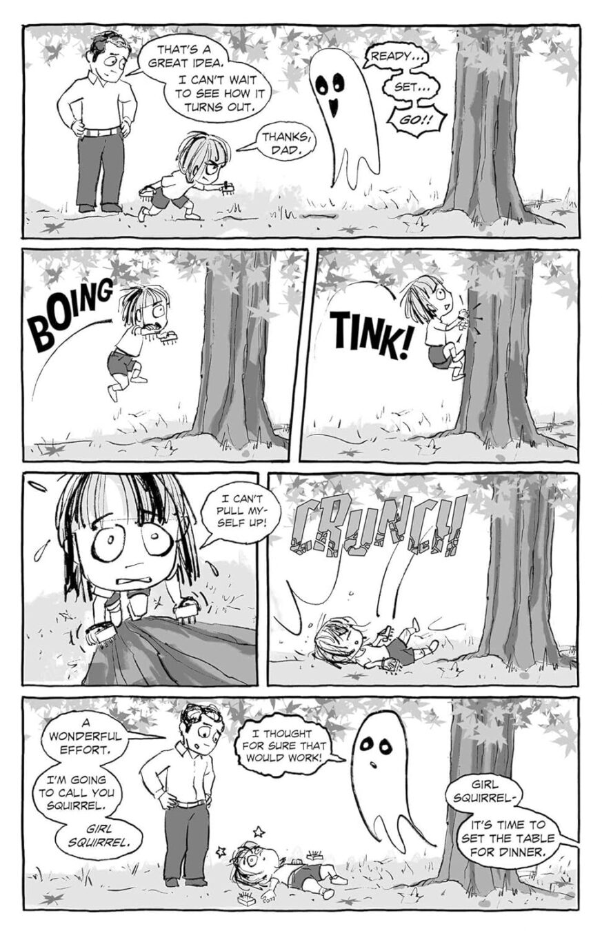 Divided into brief, self-contained stories connected by themes about sibling rivalry, empathy, and bullying, Gracie’s Ghost is a sweet and emotional book, reminiscent of Calvin & Hobbes, The Girl and the Glim, and Sheets.