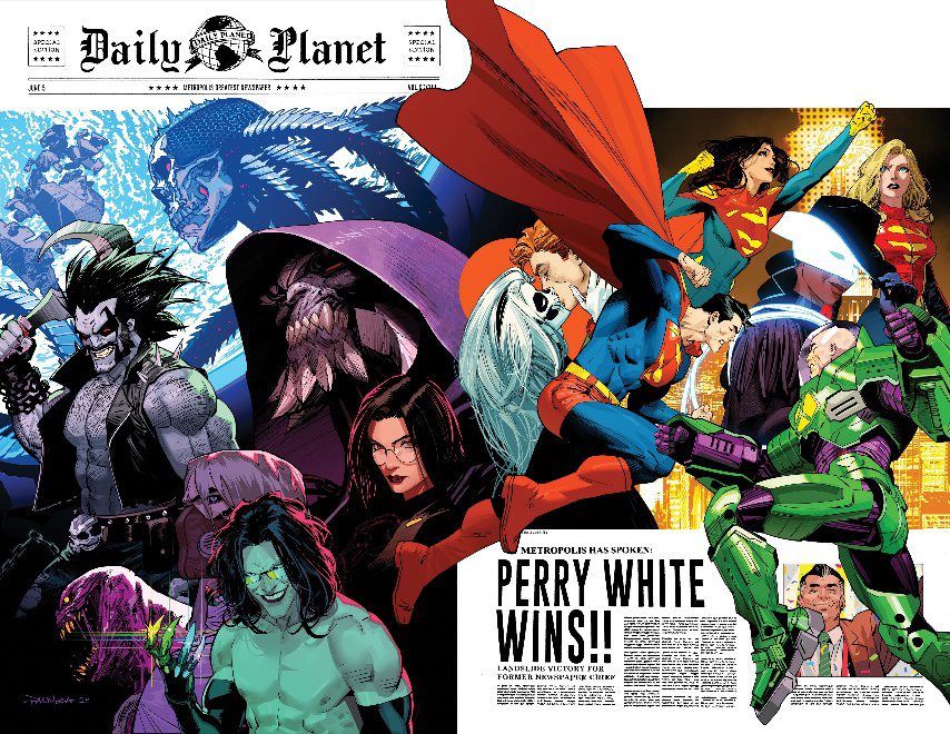 Just as Superman and Superwoman are recovering from their battles with Time Trapper and Doomsday, the biggest problem of all returns when Superman #25 hits comic book shops on April 23. Lex Luthor makes his DC All In return and is ready to fight for control of Supercorp and Metropolis. Written by Joshua Williamson, this oversize (48-page) issue features art by series artist Dan Mora (Justice League Unlimited, Batman/Superman: World’s Finest), Eddy Barrows (Action Comics) and Eber Ferreira (Action Comics, Action Comics Presents: Doomsday Special) and celebrates the last two years of Superman, connects to Summer of Superman Special #1, and sets up a brand-new storyline featuring Superman’s greatest enemy.