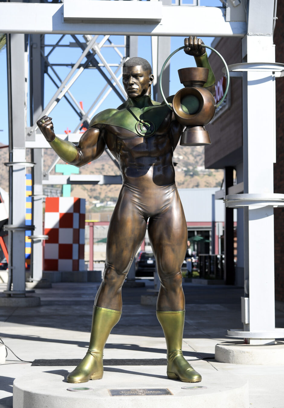 The newly installed Green Lantern statue can be viewed 24 hours a day at Empire Center’s Hangar 28 at 1775 N Victory Place, Burbank, CA.