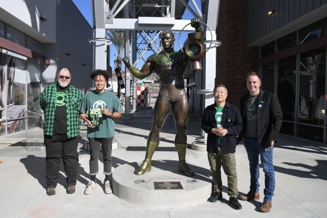 An iconic member of DC’s Green Lantern Corps stands as a symbol of willpower and keeper of law and order for visitors and residents of Burbank as a seven-and-a-half-foot-tall bronze statue of Green Lantern John Stewart was unveiled today in a special ceremony at Empire Center’s Hangar 28 in Burbank. The statue is the newest product of a partnership between Visit Burbank, DC, and Warner Bros. Discovery, joining celebrated DC Super Heroes Batman, in downtown Burbank, and Wonder Woman, at the entrance to the Warner Bros. Studio Tour.