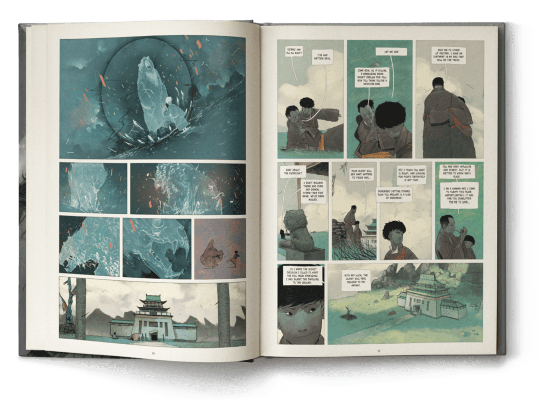 Written by Jérôme Hamon, is a visionary post-apocalyptic fantasy in a world where crops have mysteriously ceased to grow. A young boy and his father embark on a journey to uncover the truth behind a technological empire draining life-giving spirits for selfish gains. Drawing from Norse mythology and Japanese Kami, Nils is a lushly illustrated tale exploring the consequences of environmental disregard.
