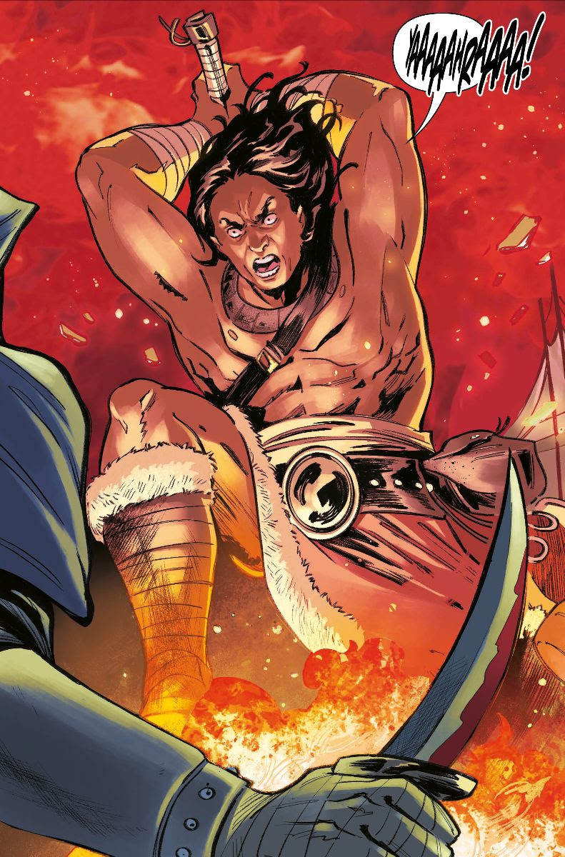 After Akarat heals the leader of the Fox Tribe, the barbarians rally around him with fierce devotion, embracing him as a living miracle. But DIABLO: DAWN OF HATRED #1 (OF 4) is not here to sell easy faith. This is Sanctuary, baby. Everybody shines different when blood is about to hit the dirt.