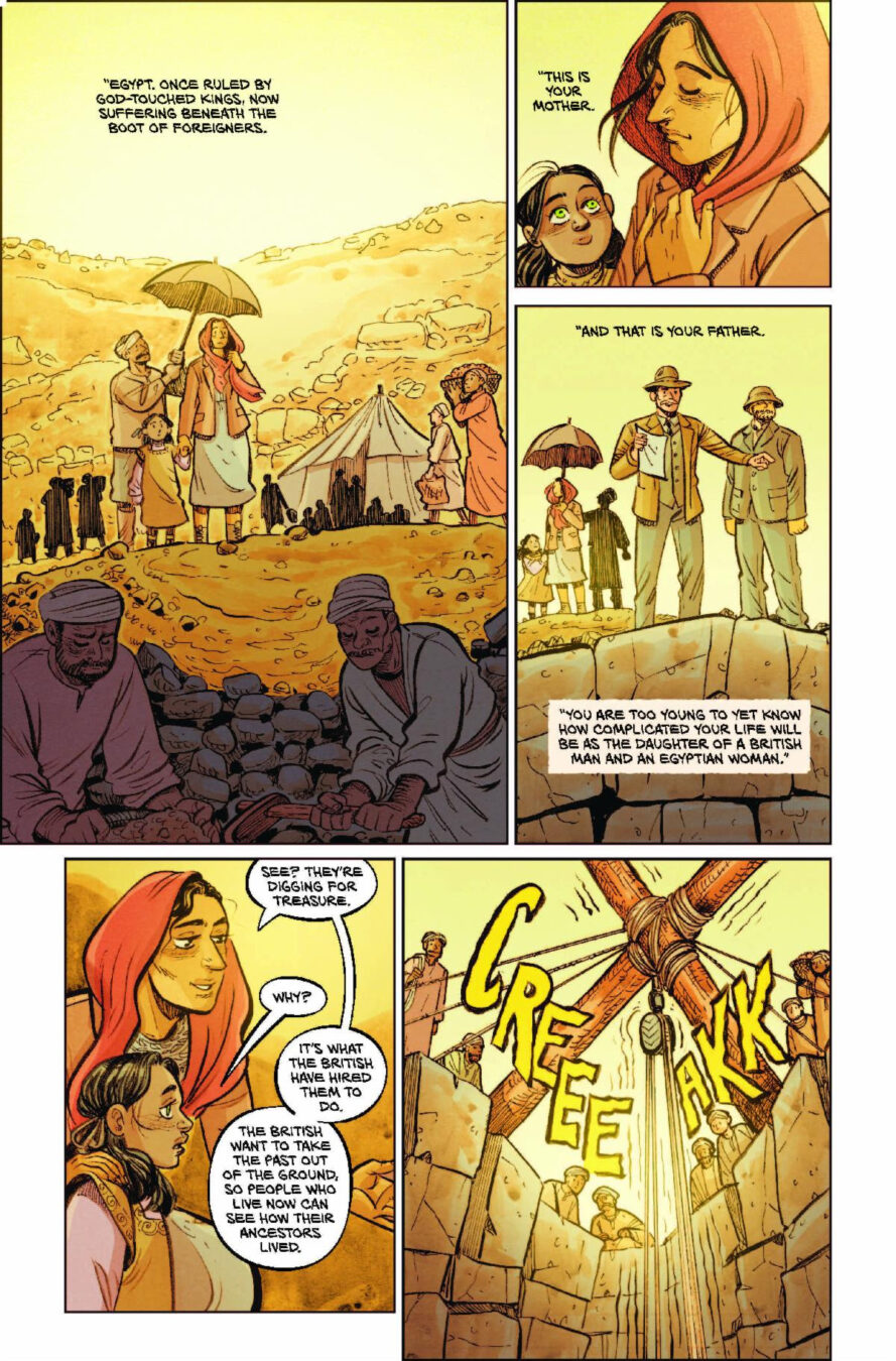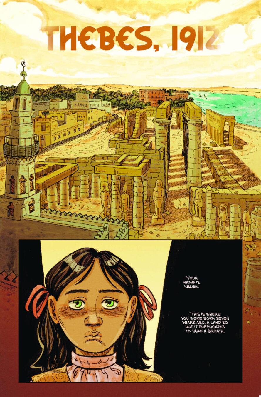“What I enjoy the most about The Mummy is the romance underlying all the horror. A mortal man defies ancient gods to bring his dead lover back to life and pays the ultimate price, transformed thousands of years later into a walking specter of death. The Mummy is intrinsically a tragic figure driven by his own pain and loss, his understandable human emotions twisted into acts.” said Faith Erin Hicks. “It’s been a thrill to tell this story from the point of view of Helen, the modern incarnation of The Mummy’s long dead love, and illustrate her growing awareness of the heartbroken horror that is lurking in the shadows of early 20th century Egypt. I hope fans of all versions of The Mummy enjoy my take on this romantically horrifying (or horrifyingly romantic) story.”