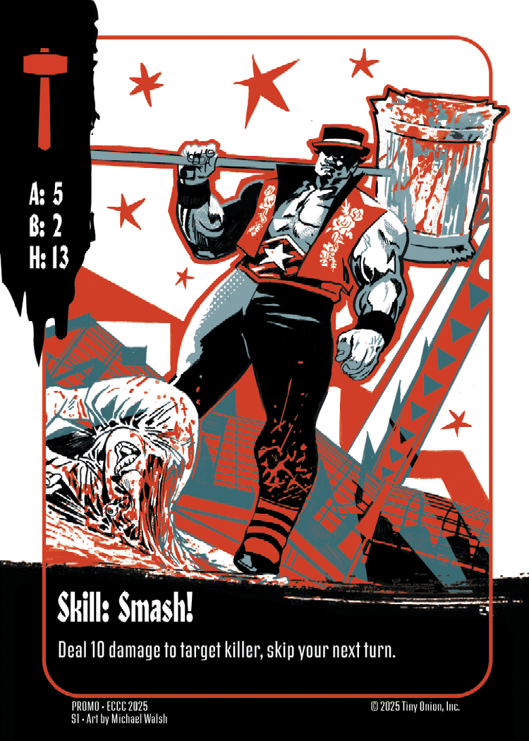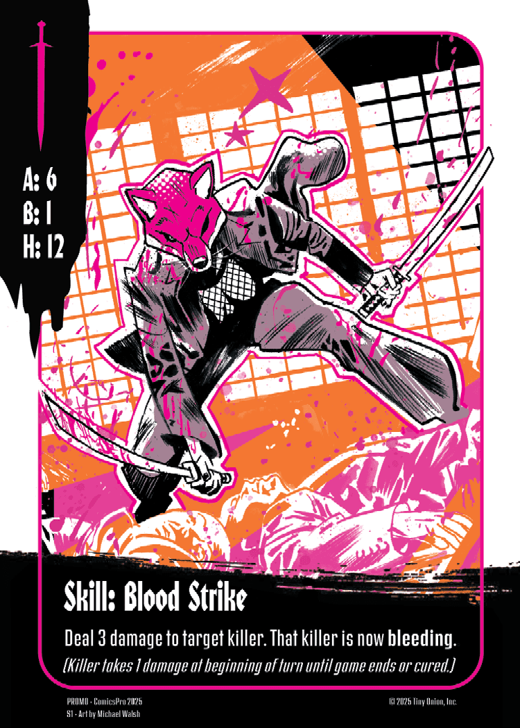 Players of the upcoming TCG will be able to wield the weapons of their favorite killers from the comics, and fans can start collecting early with cards found exclusively within polybagged Cover C variants of each issue. With gameplay designed by co-creator and frequent Magic: The Gathering artist Walsh, Exquisite Corpses: The Game has been developed in tandem with the comic series.