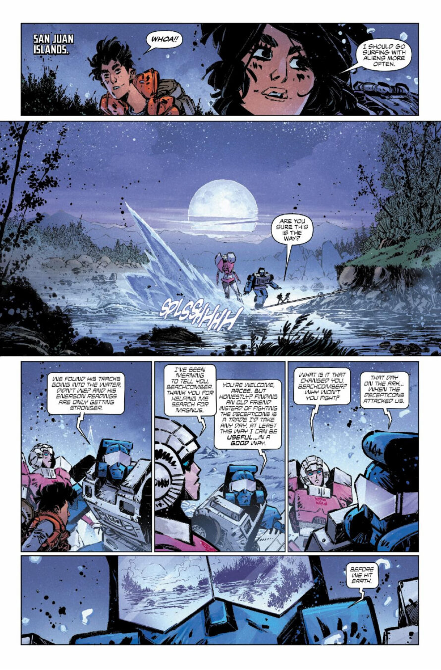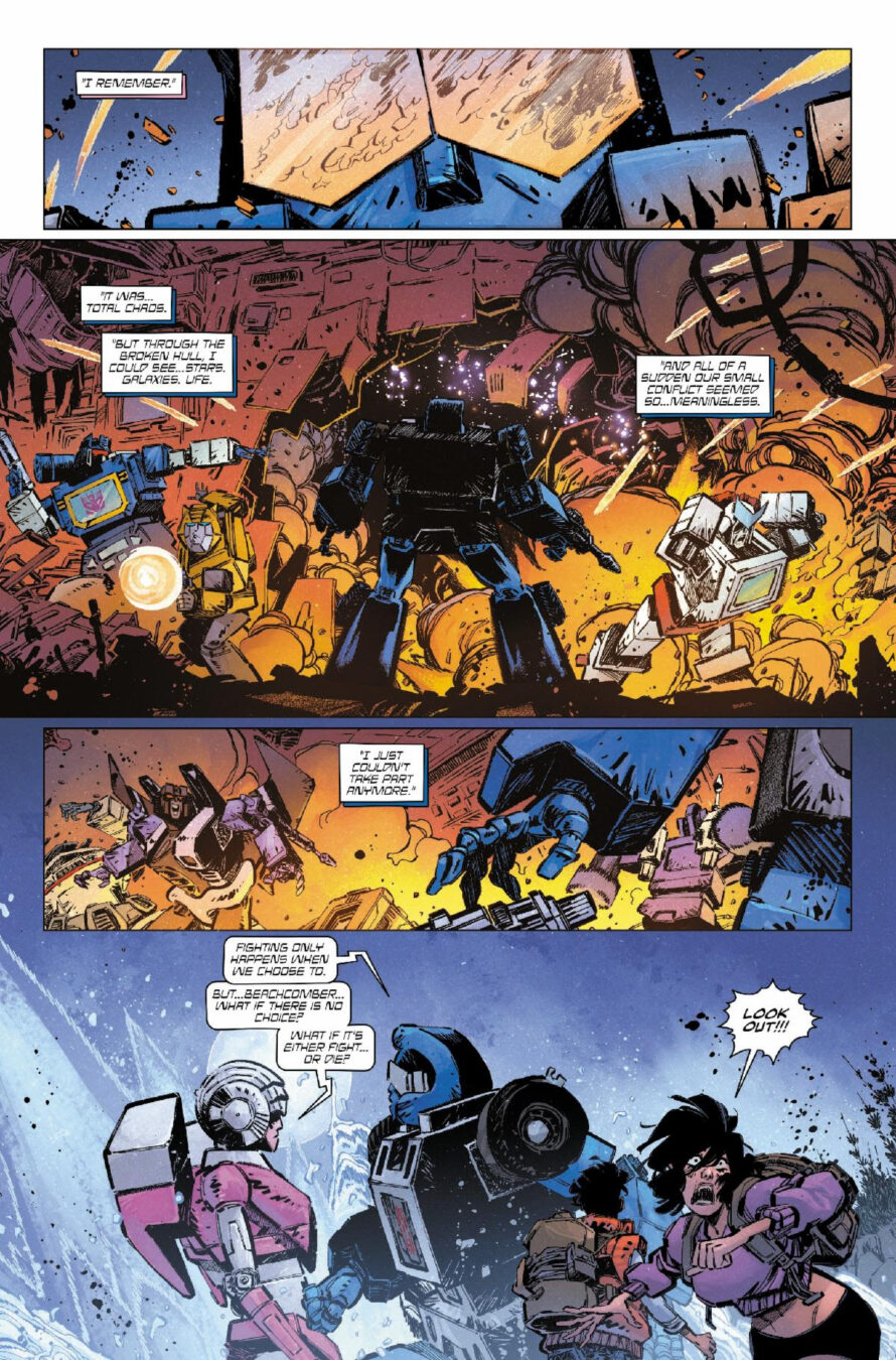 As the titanic clash from last issue rages on, a covert group of Autobots continues their search for the ally who could turn the tide on Earth – ULTRA MAGNUS! Featuring the debut of an ALL NEW TRANSFORMERS character!
