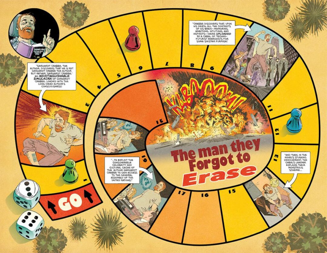 In an effort to unravel the mystery of author Benjamin J. Carp’s unexpected reappearance, Benjamin and his newfound companion, Marcus, travel to the arid Joshua Tree desert, where they discover the secret lair of a cabal of scientists eager to revive the minds of some of history’s greatest thinkers in an effort to save humanity from its greatest weakness: lack of imagination. Are they to be believed . . . or is this just more sci-fi hokum torn from a chapter in one of Carp’s beloved novels?