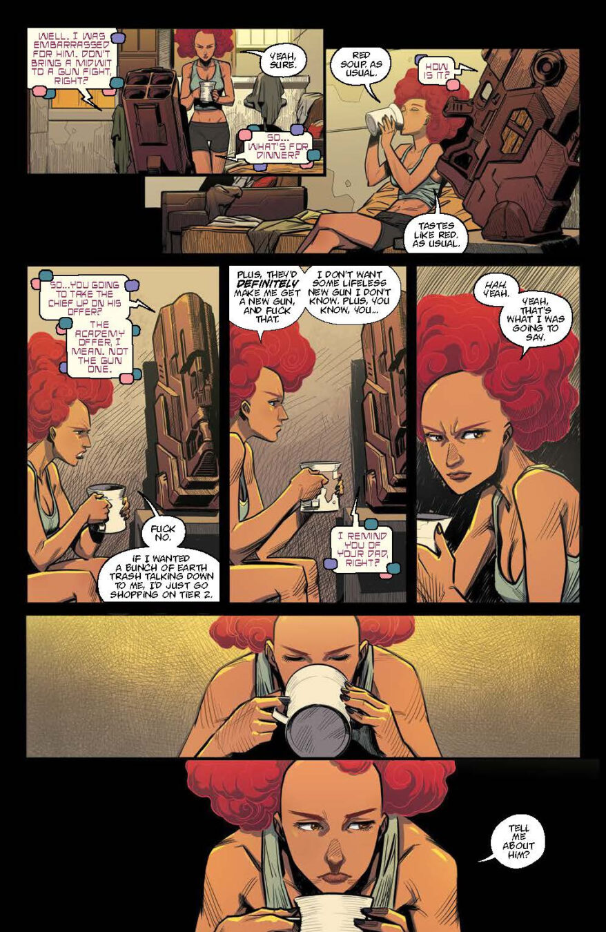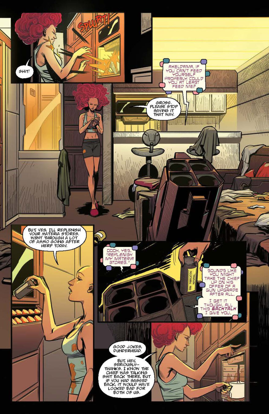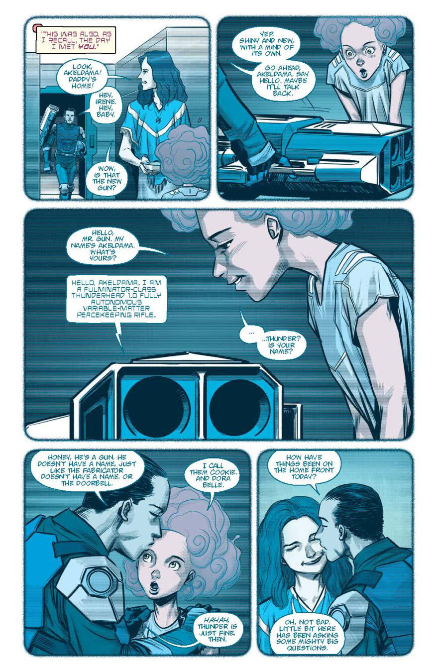 “Kirkman and the team behind Blood & Thunder were looking to strike a balance between (literally) kicking the door down with action in the first issue and laying the seeds for just what the hell’s going on inside this gilded city floating in space,” said Senior Editor Nachie Marsham. “And readers are going to see more of that balance in issue #2 and beyond. All the action, all the shouting, all the questionable decisions, and we’re just getting started!”
