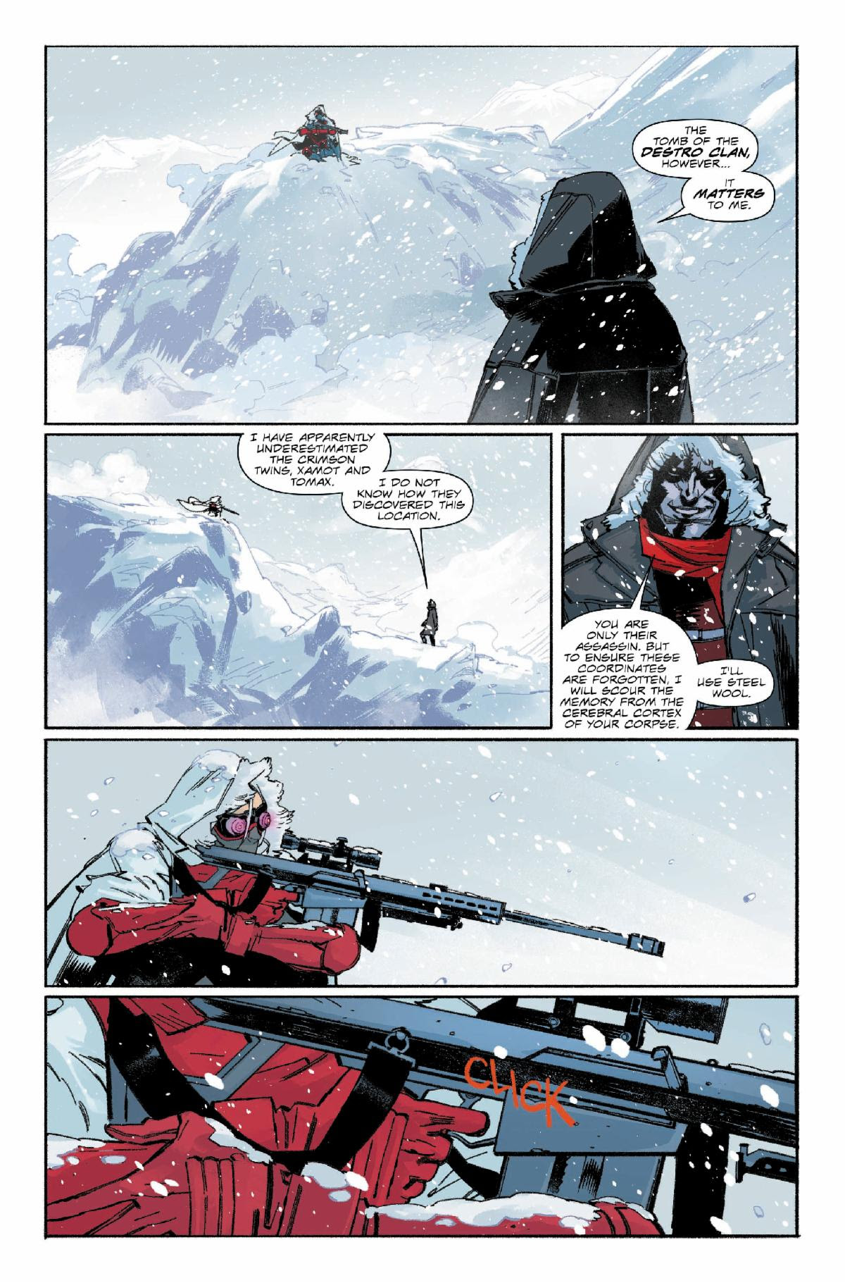 Stranded in the mountains without any weapons, Destro must survive the Chameleon’s wrath. But who is the Chameleon? And why do they want Laird Destro dead?