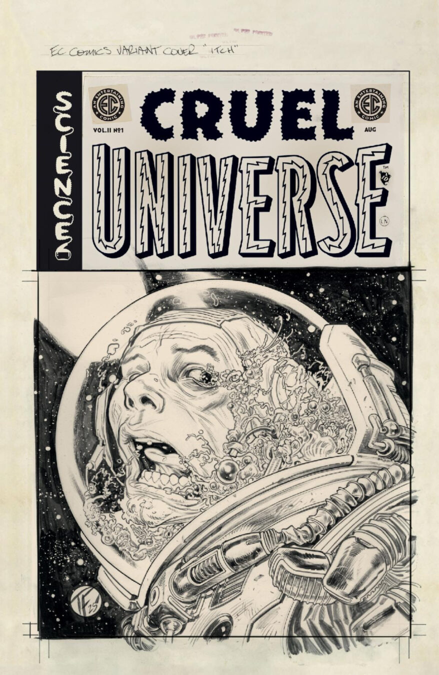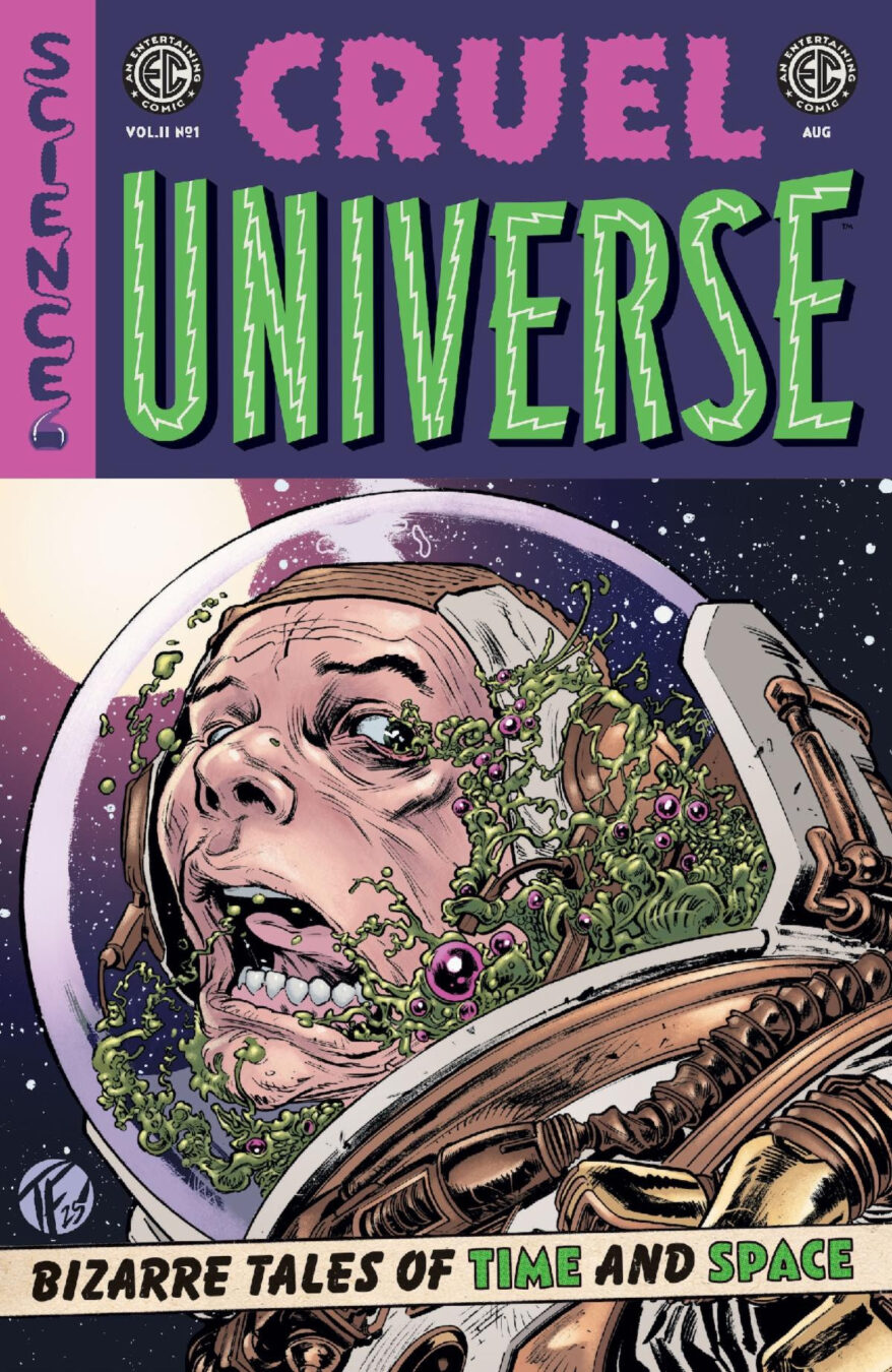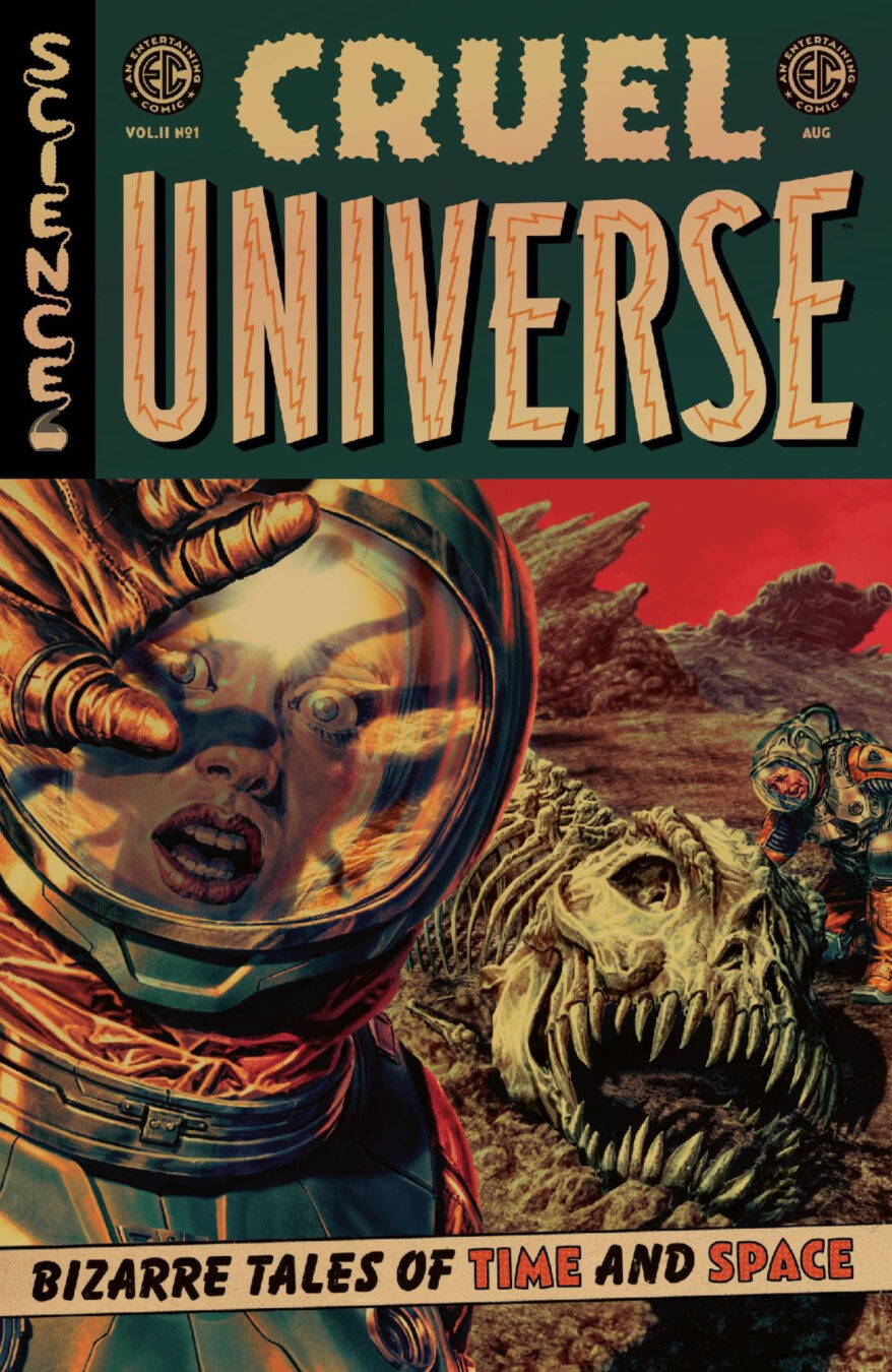 Oni Press, the multiple Eisner and Harvey Award-winning publisher of groundbreaking comics and graphic novels since 1997, and William M. Gaines Agent, Inc. are proud to deliver your first look inside CRUEL UNIVERSE 2 #1 – crashlanding in comic shops across the galaxy on August 6th from an all-star cast of comics’ most depraved scientific minds as EC Comics’ best-selling, Eisner Award-nominated ode to cosmic annihilation returns with an powerful new 12-issue maxi-series … and a colossally oversized, 40-page first issue!