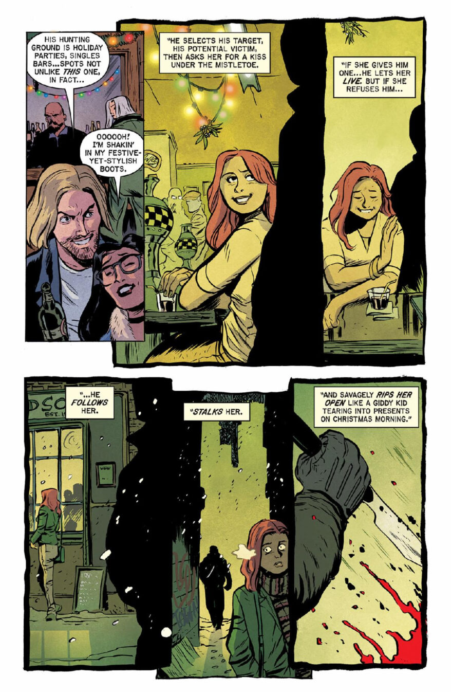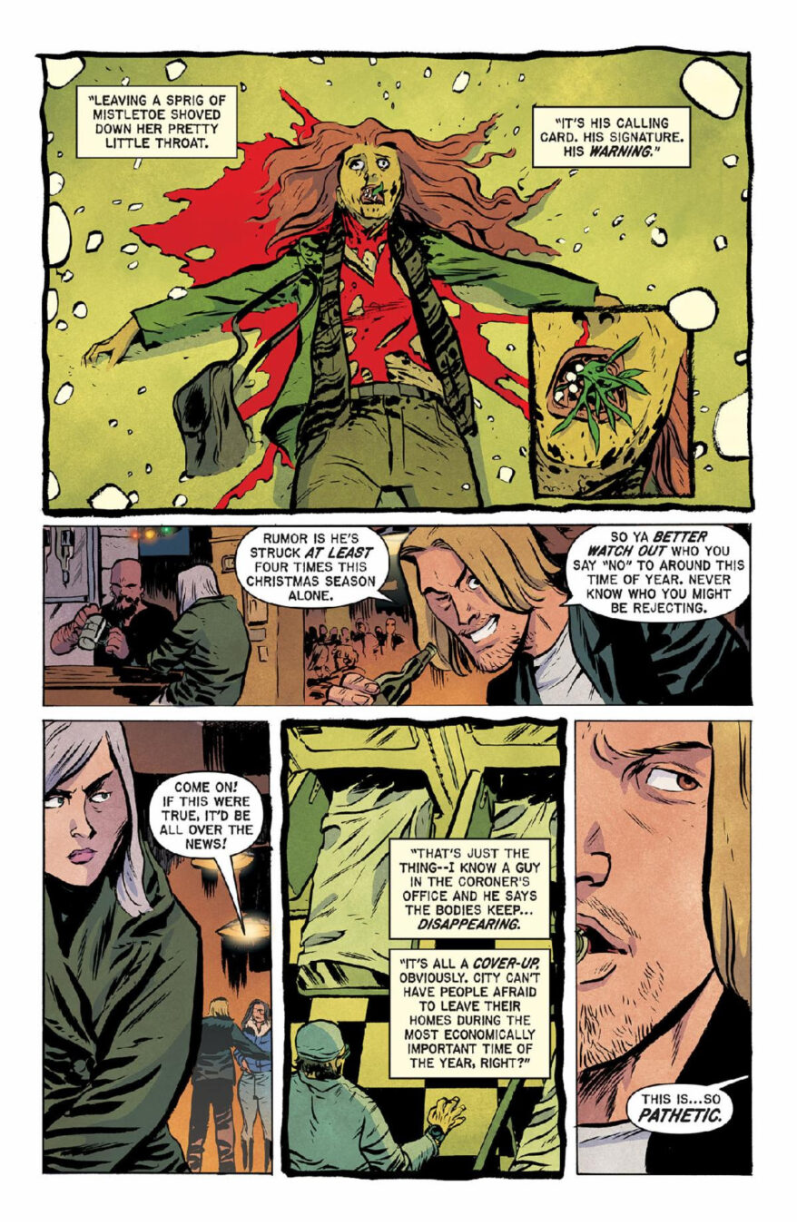 Before this year’s giant-sized tome of gruesomely gift-wrapped delights arrives in stores on December 10th, we’re aching to share a tiny appetizer of the agonies that await within … with an early advance look at the story “Mistletoe” by George Northy (Yuletide) and Dan McDaid (Shazam!, EC’s Outlaw Showdown).