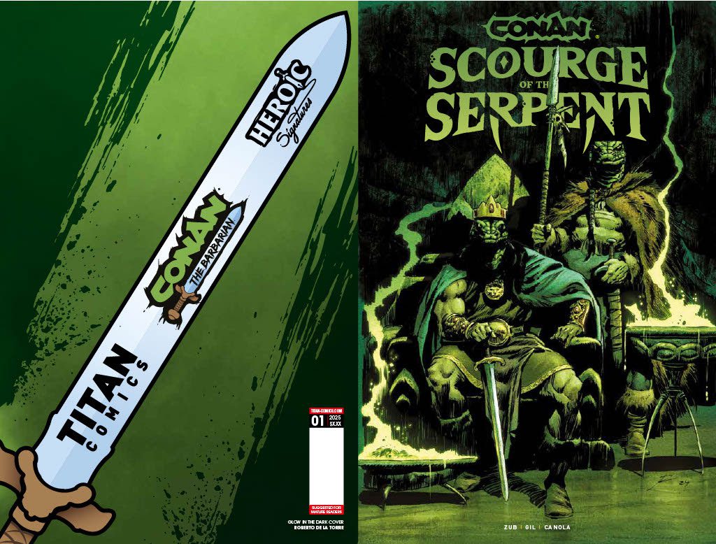 Titan Comics and Heroic Signatures are pleased to reveal the first look at the lettered pages of CONAN THE BARBARIAN: SCOURGE OF THE SERPENT #1 – spinning out of the pages of this year’s Free Comic Book Day Special –  written by Jim Zub with art by Ivan Gil!