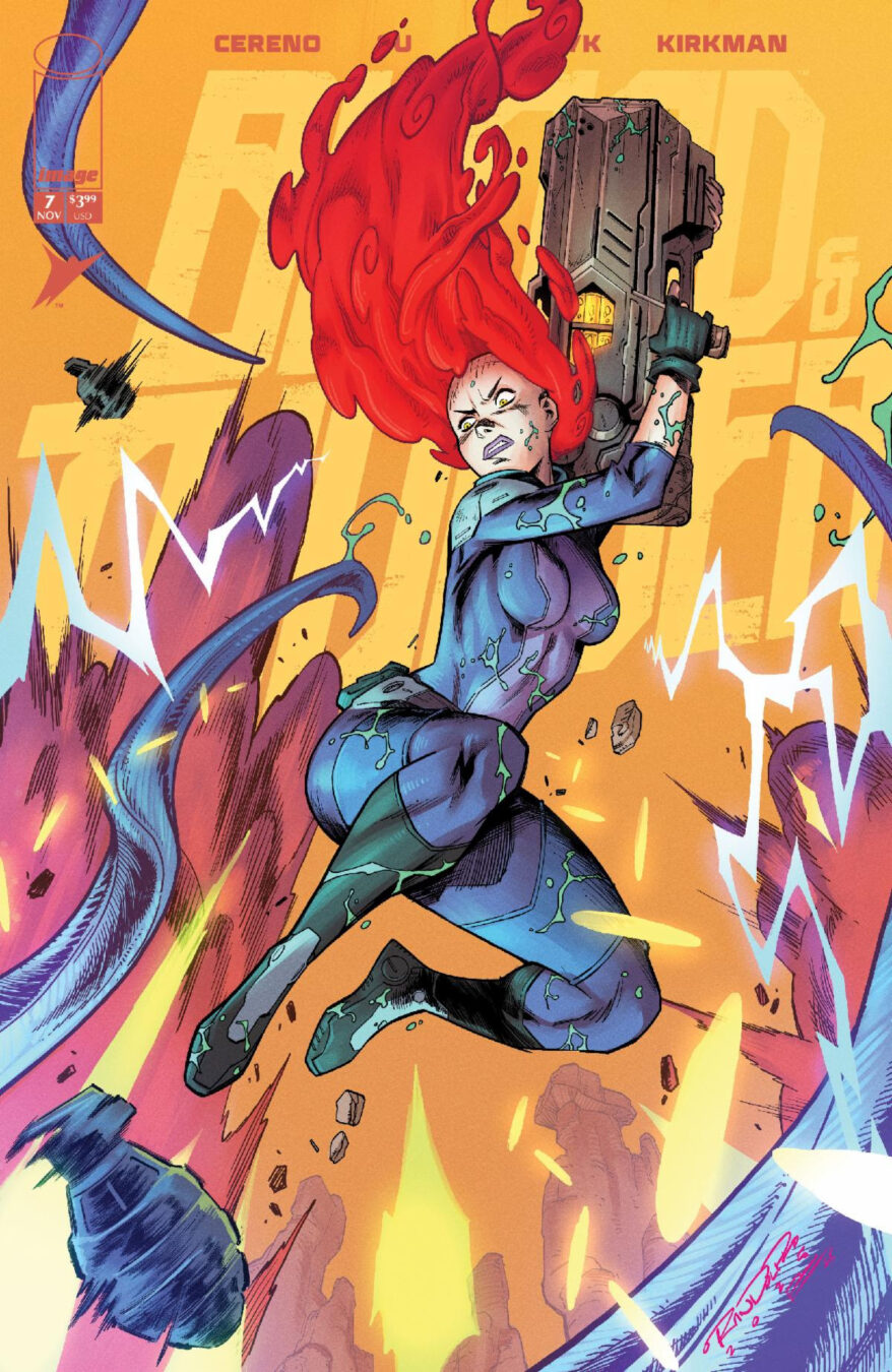 Skybound and Image Comics revealed interior pages and the lineup of variant covers for Blood & Thunder’s seventh issue. From the powerhouse team of writer Benito Cereno (Invincible Presents: Atom Eve), artist E.J. Su (Tech Jacket), colorist MSassyK (Gotham Academy), letterer Rus Wooton (TRANSFORMERS), and co-creator Robert Kirkman (Invincible, The Walking Dead, Void Rivals), the first chapter of this thrilling new arc will kick off with a bang in comic book shops on November 12, 2025.