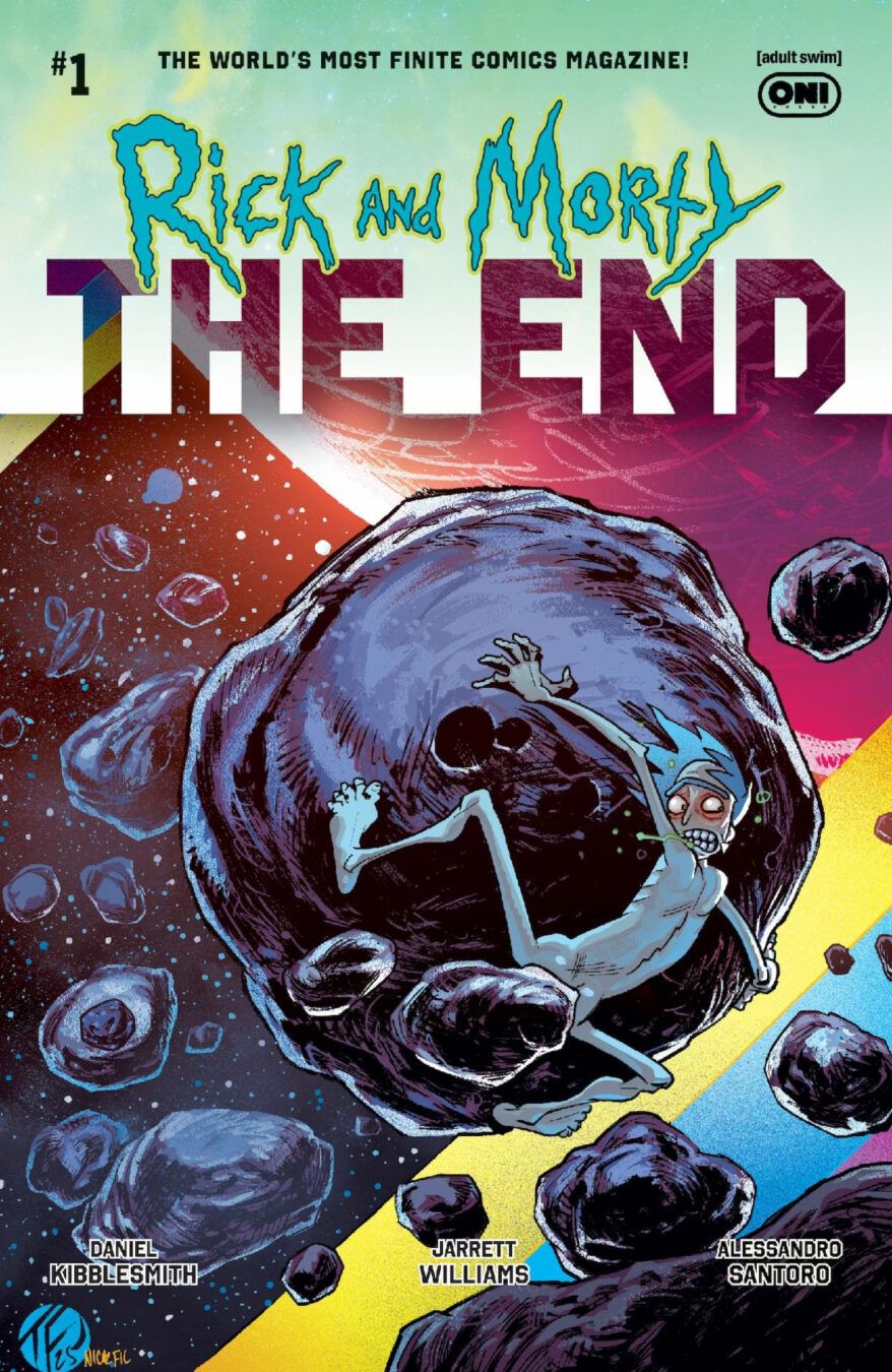Oni Press, the multiple Eisner- and Harvey Award–winning publisher of groundbreaking comics and graphic novels since 1997, in partnership with Warner Bros. Discovery Global Consumer Products, have decided that all the Rick and Morty comic book fans across the universe should see—NO, they DESERVE to see—a sneak peak at what’s to come (and end) with RICK AND MORTY: THE END #1, featuring the outer-worldly writing from Daniel Kibblesmith (Rick and Morty vs. the Universe) and the interstellar art of Jarrett Williams (Rick and Morty vs. the Universe)! The inconceivable will be conceived! The unbelievable will be believed! Can you imagine both of these concepts contained within one comic book? You better . . . especially when RICK AND MORTY: THE END #1 arrives in stores on December 3! Continue reading to see a first look at the book . . . you just need the guts . . . Do you have them?