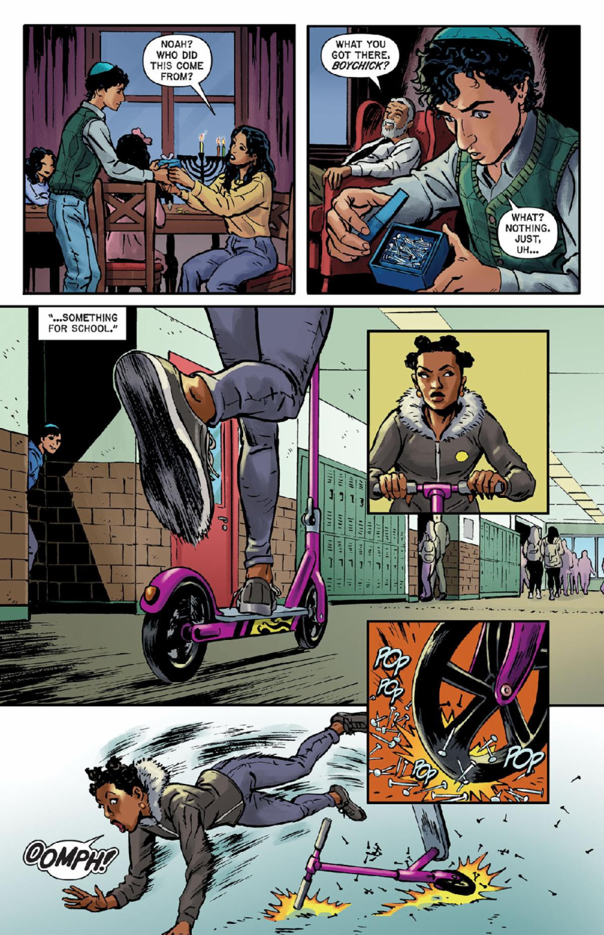 “I’m delighted to once again be a part of Oni’s twisted look at the holiday season, and especially proud to be representing the traditions of my own personal forefathers, taking a classic tale of revenge and putting a dreidel-style spin on it,” said writer Ben H. Winters. “Young Noah is sick and tired of being the butt of his classmates’ taunting and cruelty, but never did he imagine that the joyful festival of Hanukkah would present him the opportunity to take his eight-fold revenge. Maybe let’s not show this one to my mother, or my rabbi…although in the end I think ‘Eight Vengeful Nights’ delivers a message in the spirit of the season.”