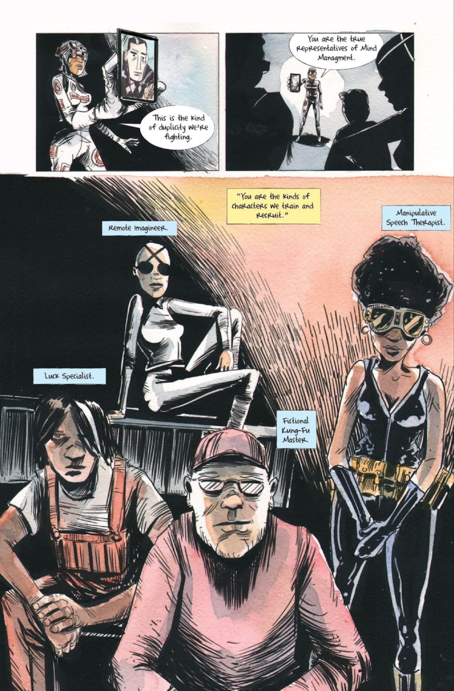 First: Congratulations! You have been selected to join the ranks of MIND MGMT – the secretive agency rumored to influence global affairs from the shadows through assassination, sabotage, and psychic espionage. In the hands of our elite instructors, you will be schooled in the exotic arts of mental manipulation, information warfare, subliminal conditioning, and more. This comic book is part of your training. Read on to discover who we are, who we are fighting, and why our lives are no longer our own in this self-contained, educational introduction to the vast underground network we call MIND MGMT: NEW & IMPROVED #1, as written and drawn by Matt Kindt.