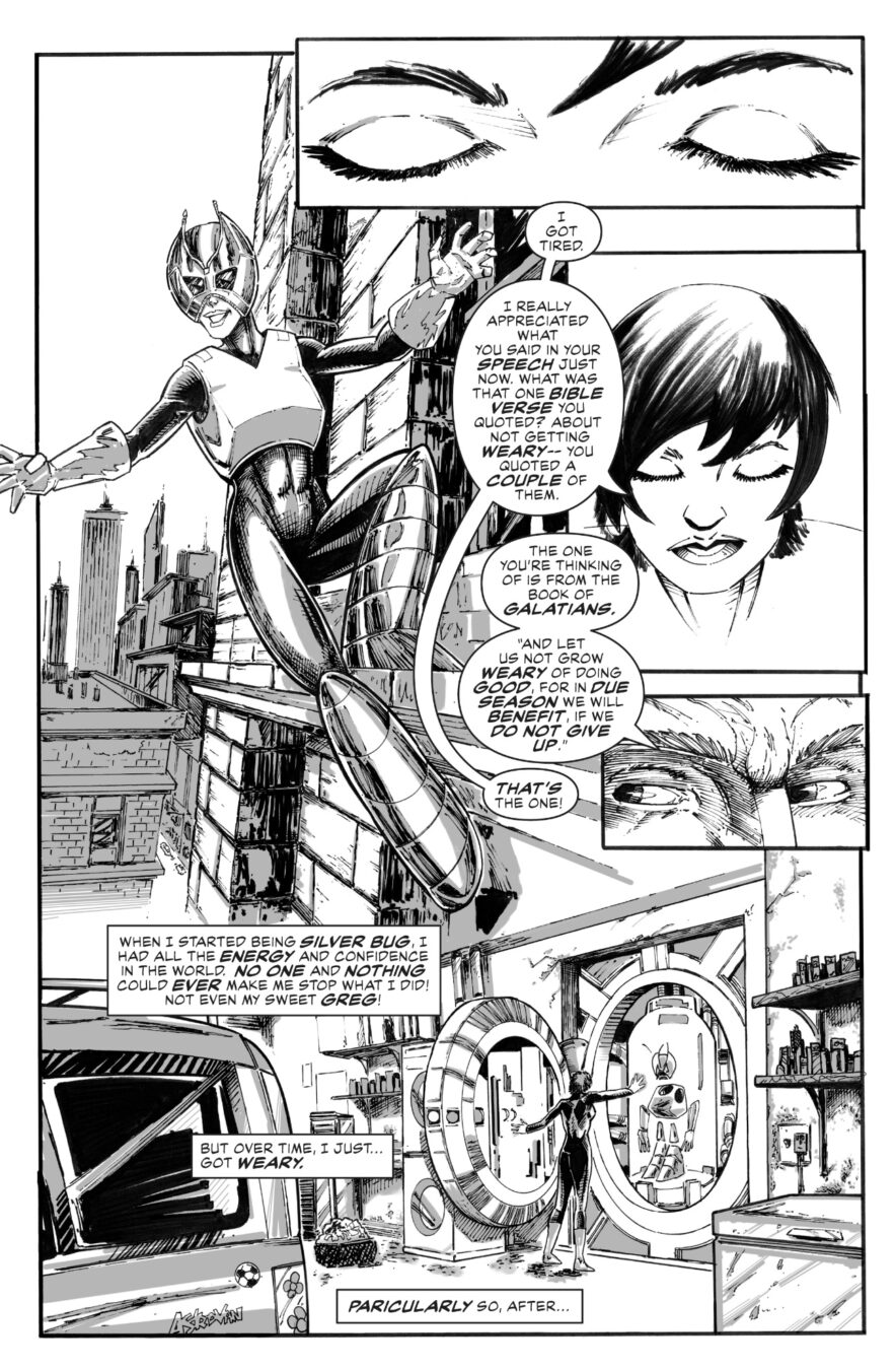 GMP Main Artist Levi Skeen says, “GALAXY MEMORIAL PARK is a love letter to comics, superheroes, and indie comics in general!”
