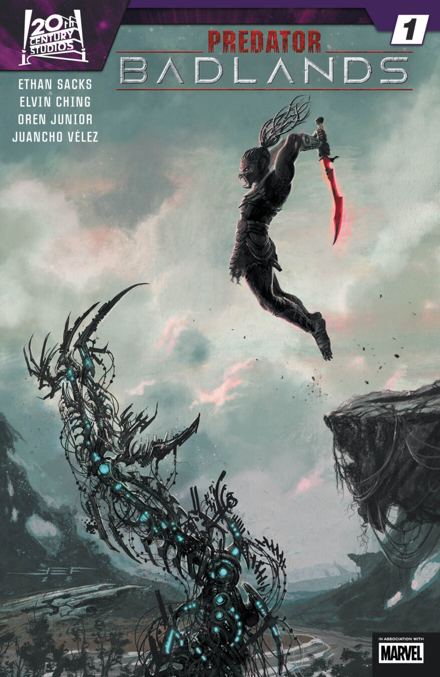 “Predator: Badlands,” the thrilling new entry in the “Predator” film franchise, arrives in theaters on November 7. That same week, Marvel Comics will publish PREDATOR: BADLANDS #1, a tie-in comic by writer Ethan Sacks, known for his stellar work on Marvel’s Star Wars titles, and, in his Marvel Comics debut, artist Elvin Ching, a promising recent participant of Marvel’s Art Atelier program. Serving as the official prelude to the highly anticipated film, the one-shot is being produced in close collaboration with director Dan Trachtenberg, who will also write a foreword for the issue. Today, fans can check out never-before-seen interior artwork as well as all three of the issue’s covers.