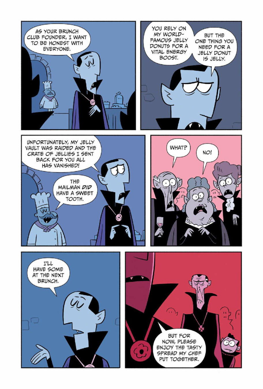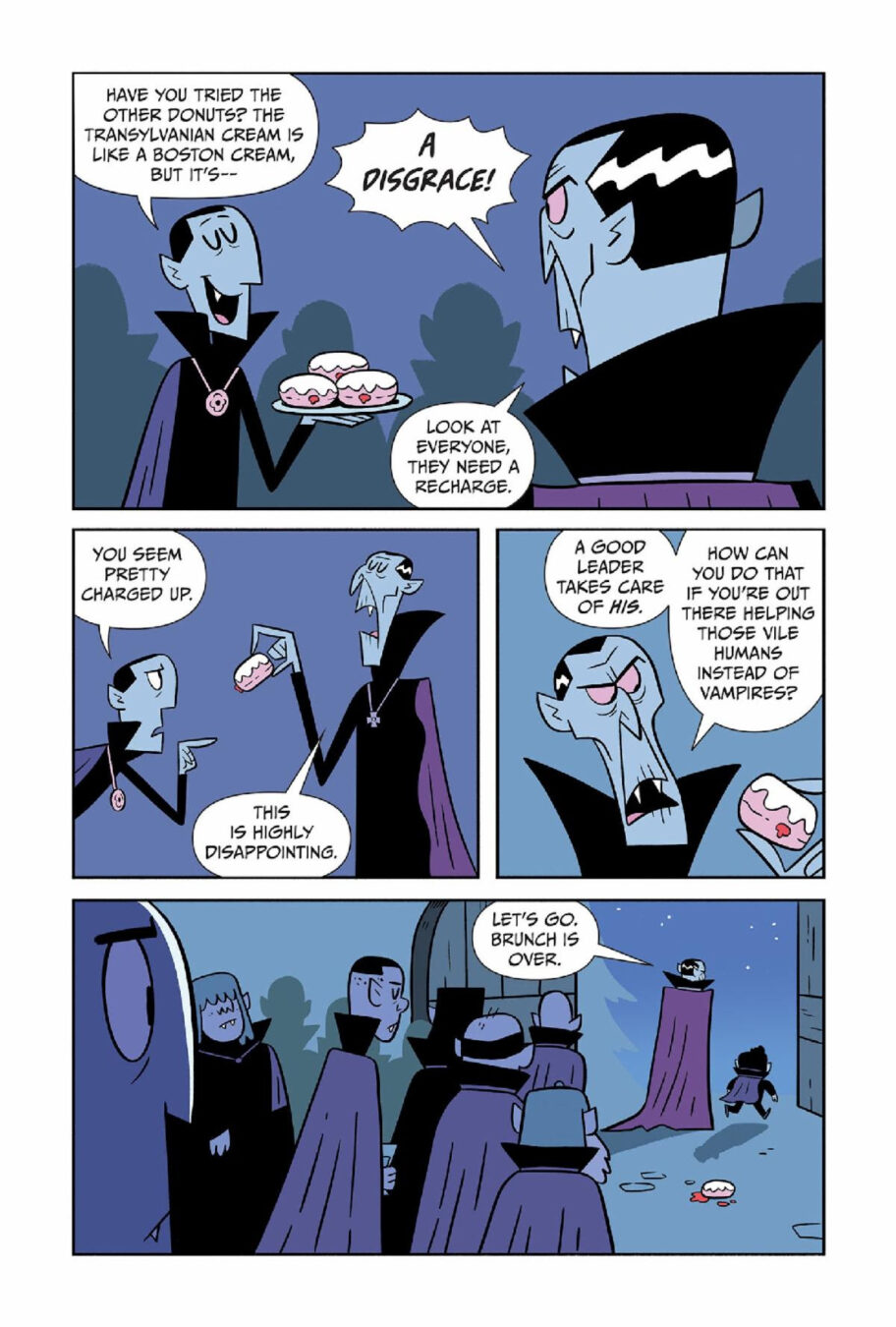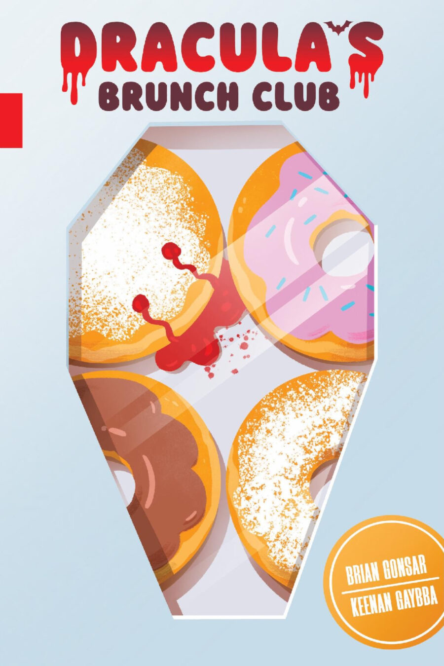 Oni Press, the multiple Eisner and Harvey Award-winning publisher of groundbreaking comics and graphic novels since 1997, is proud to awaken DRACULA’S BRUNCH CLUB! Have you ever wondered how vampires got their taste for blood? In Dracula’s Brunch Club, it all started with a crimson-red donut, dripping and oozing with spooky secrets—I mean, jelly. Dripping and oozing with non-spooky-tasting JELLY. Get ready to sink your fangs into the hilarious new graphic novel from debut authors Brian Gonsar (Twisted Tales of Scary Stories: Werewolves) and Keenan Gaybba! Blood, treachery, and humor from two promising newcomers not enough? DRACULA’S BRUNCH CLUB will also hit the stands with a foreword from Kevin Jonas of the Jonas Brothers!