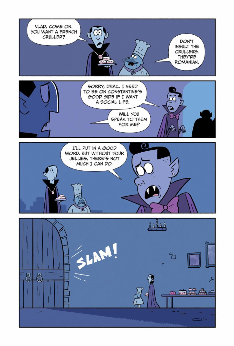 Count Dracula is not your average vampire. Well, sure, he’s undead, hates garlic, and will burn up in sunlight––but unlike other vampires, he has a knack for baking. And it’s his brunch club’s famous blood-orange-jelly donuts that give his fellow vampires the energy source they need to live forever. But when Transylvania experiences a mysterious jelly shortage, it allows his nemesis, Constantine, to swoop in and steal the brunch club—and the vampires’ loyalty—from Dracula. But it’s not just jelly donuts at stake. When townsfolk start to go missing, Dracula suspects Constantine has far more sinister motives lurking that could threaten everything vampires and humans have worked for. With the help of his chef and human friend, Elena, Dracula must find a new energy source before every vampire and human turns on him and he loses his coveted brunch club forever.