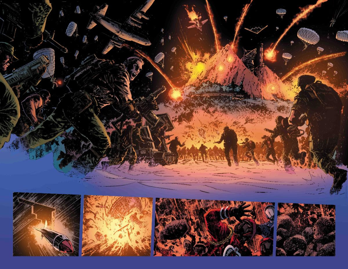 In Crimson Guard #1, Gabriel Hardman pulls readers directly into the ruthless world of Cobra’s secretive soldier program. A new class of Crimson Guard recruits is about to graduate—but first they must pass their ultimate test: protect Cobra Commander during a full-scale assault from G.I. Joe.