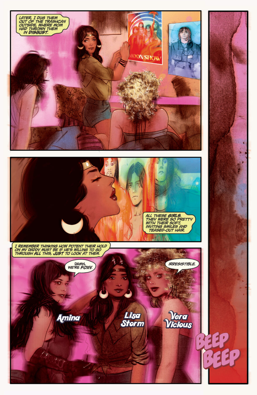 “Groupies has been a labour of love for Helen and I,” said Tula Lotay. “We both share so many interests in horror and music of the time. She had me pulled in at ‘what if the satanic panic is real, and we follow a group of badass groupies finding that out’. That era is so rich with dark stories anyway. Throw psychedelics and some Argento colours into the mix and you have a story we both couldn’t wait to get out there.”