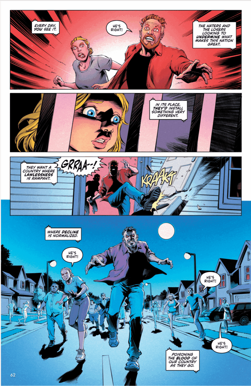 Art (including inks, colors and lettering) by: Jason Shawn Alexander, Valerio Alloro, Raúlo Cáceres, Jaime Carillo, Ryan Carr, Richard P. Clark, Leonardo Colapietro, Federico De Luca, Ed Dukeshire, Hernán González, David Hitchcock, Jack Mandrake, Sian Mandrake, Andrea Mutti. Nick Percival, Alex Sarabia, Benjamin Sawyer, Cat Staggs, Damien Worm, Ryan Winn