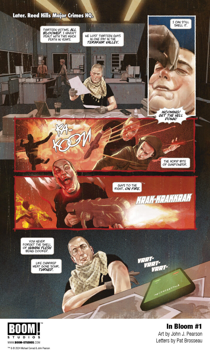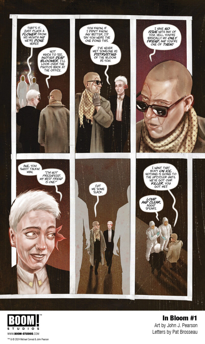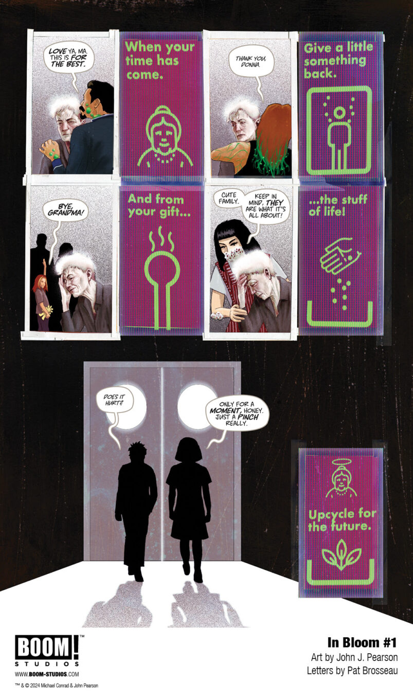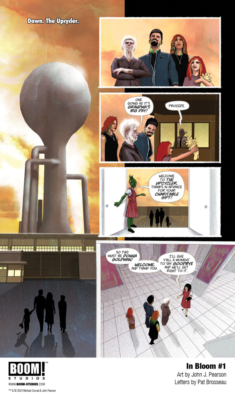 BOOM! Studios revealed a first look at IN BLOOM #1, the premiere issue of a brand new boundary pushing sci-fi series from visionary writer Michael W. Conrad (Wonder Woman), Eisner-Award-winning illustrator John J. Pearson (Mindset), and letterer Pat Brosseau. Coming to comic shops in December 2024.