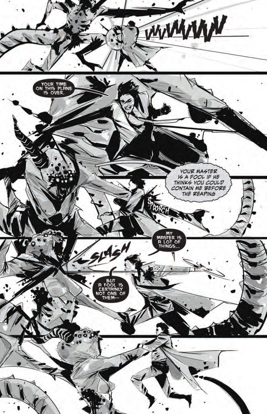 “This series of shorts is my proving ground. A fertile landscape where I explore the character, mythos and themes that lay the foundation for the series,” adds Miller. “At its core, Death’s Immortal Hunter is about relationships — especially our relationship with death. I want to dig deep into the worldbuilding, the mythology, and the emotional weight of a flawed protagonist who fights demons — both figurative and literal — while questioning everything they’ve done to bring the world to this point.”