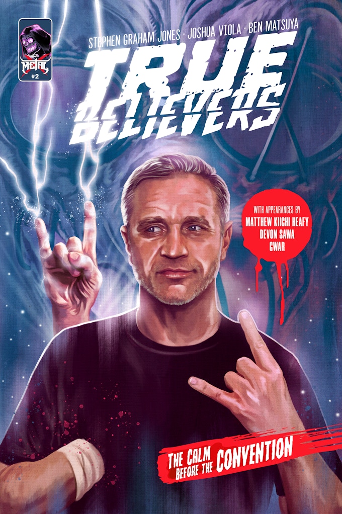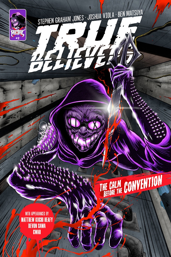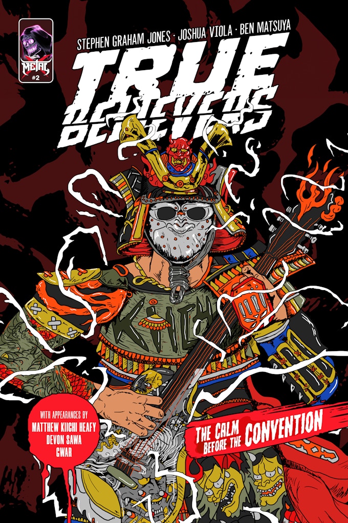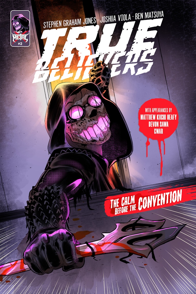Some of the biggest names in horror — iconic actress Jamie Lee Curtis, the band GWAR, bestselling novelist R.L. Stine, screenwriter and film director Jeffrey Reddick (Final Destination), musician Matthew Kiichi Heafy, actor Devon Sawa, and the characters from the cult horror film Deathgasm — will make cameo appearances in TRUE BELIEVERS, a gripping and grisly new comic book mini-series co-written by bestselling Bram Stoker Award-winner Stephen Graham Jones and Denver Post bestselling writer Joshua Viola, featuring artwork by Ben Matsuya. The three-issue series, which delves into the world of cosplay and fan conventions, is set at the Colorado Festival of Horror. A Kickstarter campaign for the second issue features lettering by Jeremiah Lambert and variant covers by Matthew Therrien, Skinner, GWAR’s Matt Maguire, Luigi Scarcella of Half Sumo, and Ben Matsuya, as well as all-new, limited edition variant covers featuring Jamie Lee Curtis and R.L. Stine and Deathgasm by Therrien.