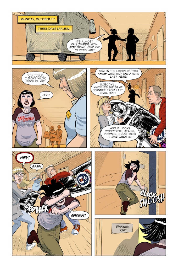 “We’re incredibly honored to have iconic Scream Queen — Jamie Lee Curtis — featured in our slasher tale,” said Joshua Viola. “As a special treat for fans, we’re offering limited Jamie Lee Curtis variant covers by Matthew Therrien. But it’s more than just a cool cover. For every purchase of her variant, I will personally match that amount and donate it to the Children’s Hospital of Los Angeles, in support of Jamie’s charity, My Hand In Yours. Your contribution to the campaign will make a significant difference in the lives of critically ill & injured children.”