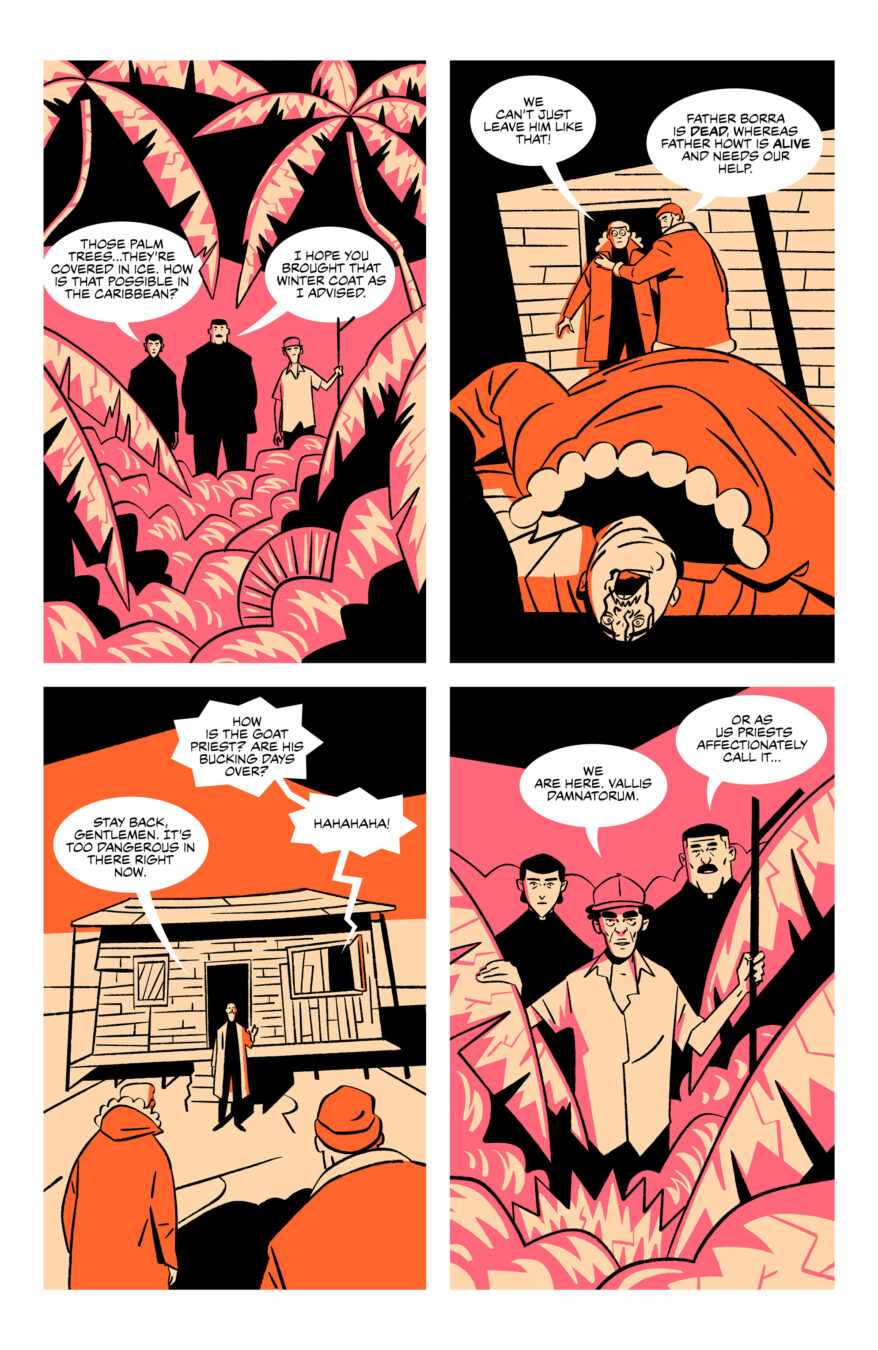 Following a terrifying confrontation with a possessed woman, Father Gigi Amato finds himself sent to a remote Caribbean Island run by the Vatican to join a group of priests tasked with looking after the most troubled, long-term, demonic possession cases. The group of psychologically and emotionally bruised priests bicker and bond in their attempt to keep the madness of the island under control, but dark forces are working against them from all sides as evil digs its nails into their spiritually poisoned, isolated home.