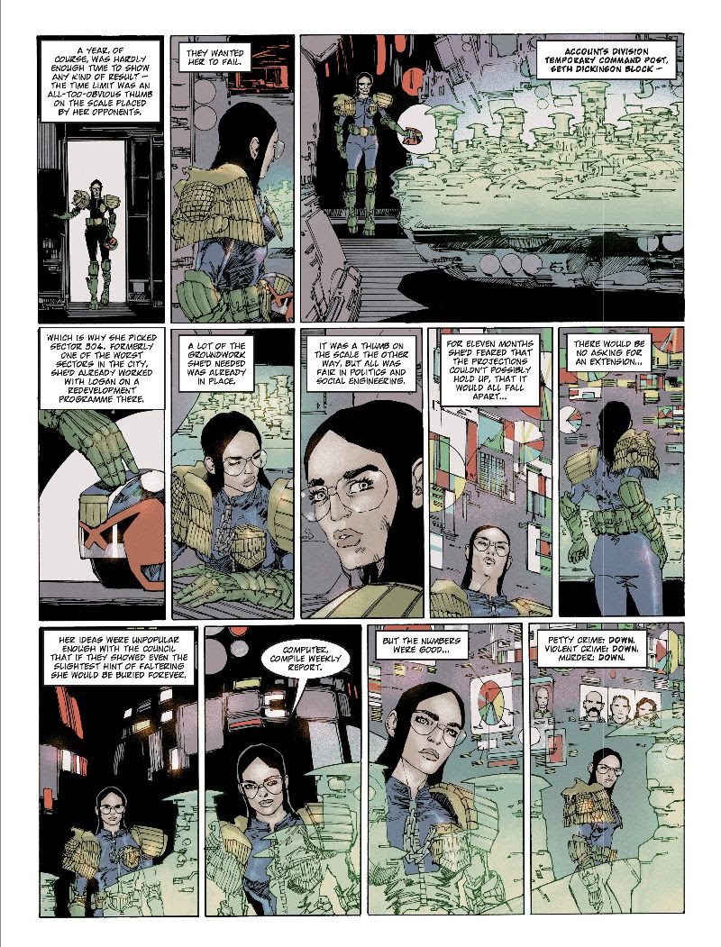 Judge Miaitland, a member of the Judge’s Accounting Department and long-time Dredd ally, is tasked with finding ways of making law enforcement more affordable in Mega-City One. But this directive from the Chief Judge himself leads her down a rabbit-hole as she discovers a surprising truth: if the department were to defund the Judges and reallocate the money to education, community and culture instead, she could reduce crime levels permanently!