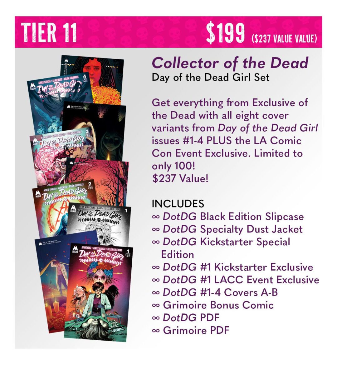 Day of the Dead Girl: Exclusive Hardcover Edition includes mystery stretch goals and VIP discounts to be unlocked throughout the spooky season, and all to be buttoned up with a very special countdown with the creative team for just one more amazing backer giveaway!