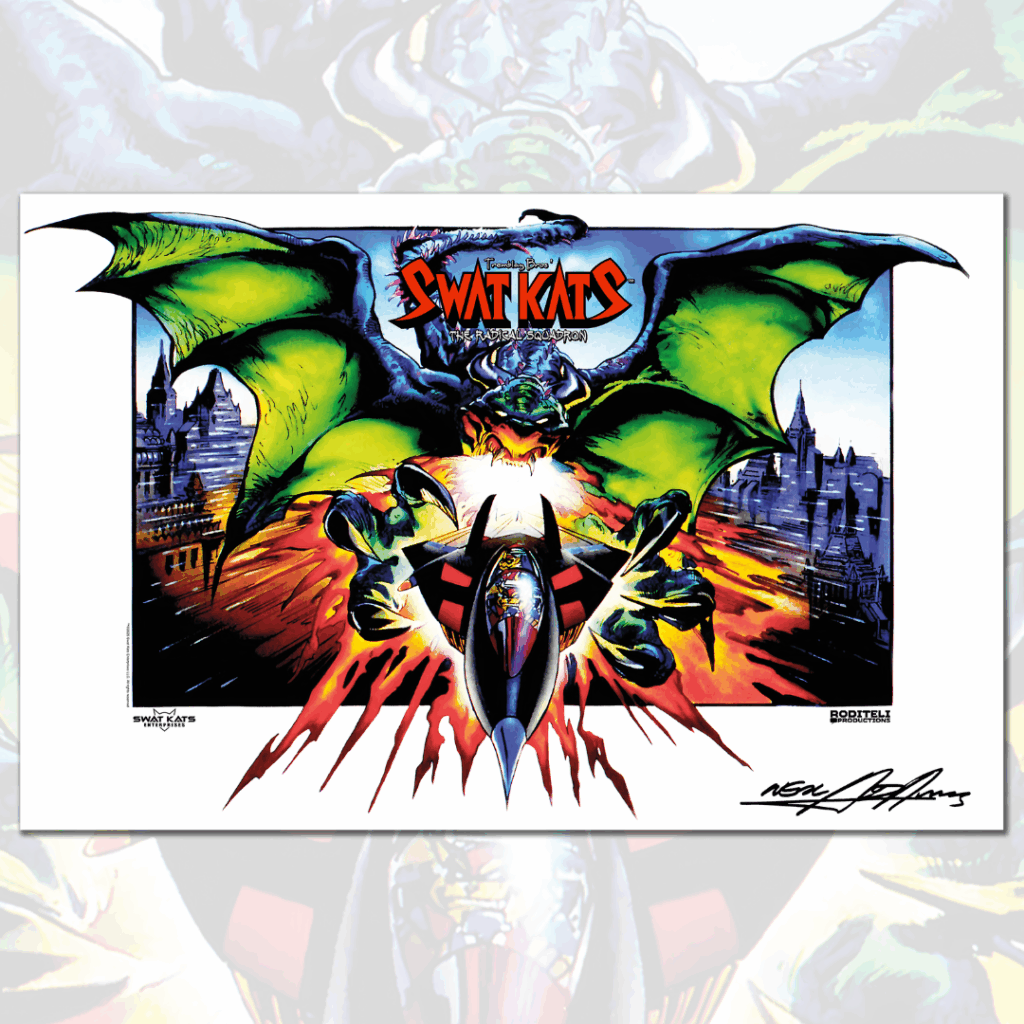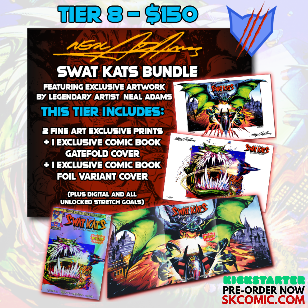 Fans can now select the TIER 8 – NEAL ADAMS SWAT KATS BUNDLE on the Kickstarter campaign. This bundle includes a Swat Kats #1 Gatefold Cover, a Swat Kats #1 Holofoil Cover, and two Swat Kats art prints, all by Neal Adams. If you’ve already backed the project, each item is also available individually as an add-on on Kickstarter.
