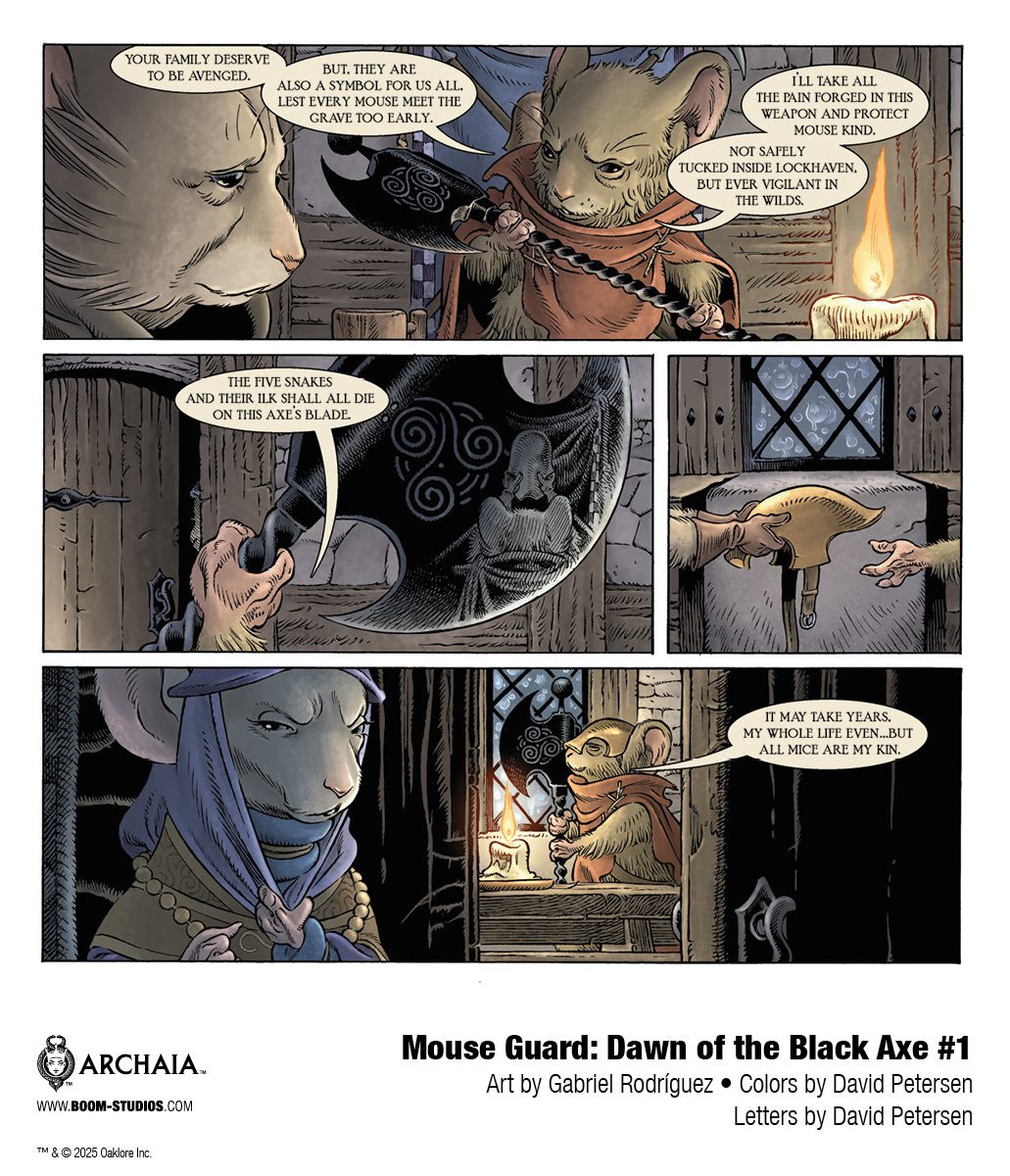 For continuing news on MOUSE GUARD: DAWN OF THE BLACK AXE and more from BOOM! Studios, stay tuned to www.boom-studios.com and follow @boomstudios on X.