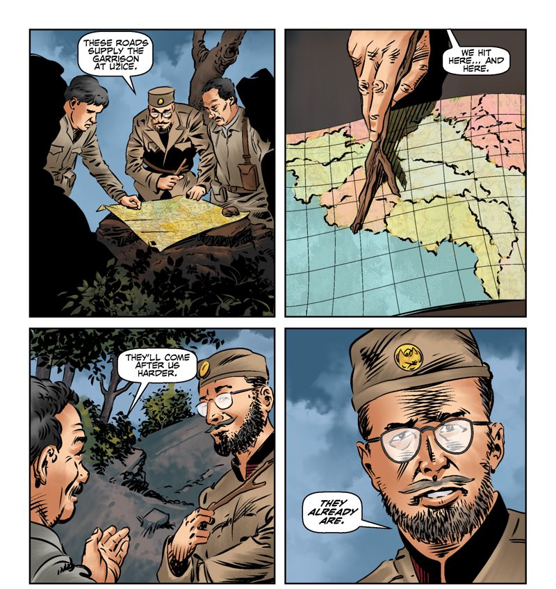 Unlike Lenovations’ other titles which often blend fact with science fiction or the supernatural, Uneven Ground is rooted firmly in real events. This debut issue tells the story of Colonel Draža Mihailović and the Chetnik resistance in Yugoslavia during World War II, a chapter of history rarely explored in modern media. Inspired by a 1942 wartime comic and informed by extensive research, writer Len Mihalovich balances historical fact with compelling drama to bring readers into the heart of a forgotten fight for freedom.