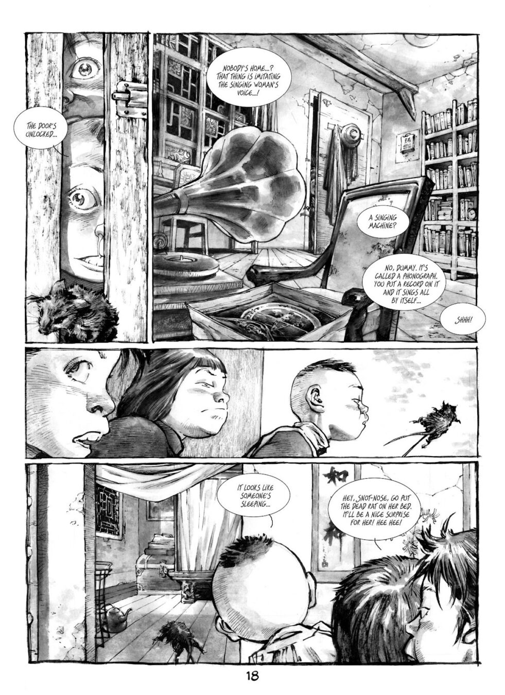 TWIN LOTUSES follows a Chinese orphan known as Stink Head, whose life changes forever when he befriends Fan, a Chinese engineer who built an extraordinary clockwork automaton that performs at a local theater. Meanwhile, war rages throughout the city, and orphaned children run wild under the direction of local potentates in an attempt to thrive and survive. When those potentates take notice of the mysterious beauty at the theater, suspicions and desires start to grow, and Fan’s history with his invention comes into heartbreaking focus. Mix in an American airman and the tensions of war, and things build to an explosive finale.
