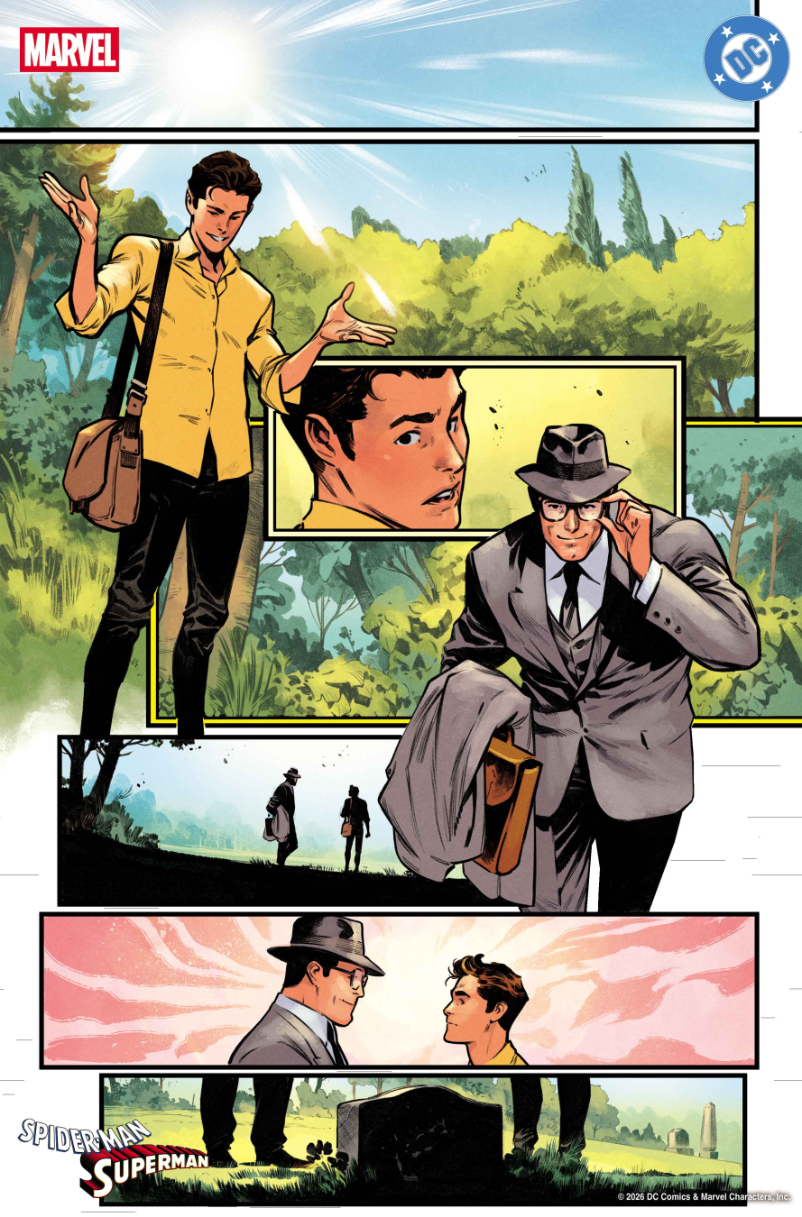 Check out new SPIDER-MAN/SUPERMAN #1 variant covers including homage covers by Giuseppe Camuncoli, David Marquez, and Sanford Greene and stunning pieces by Adam Hughes and Ivan Talavera. Plus, get a sneak peek at the lead story by Brad Meltzer and Pepe Larraz.