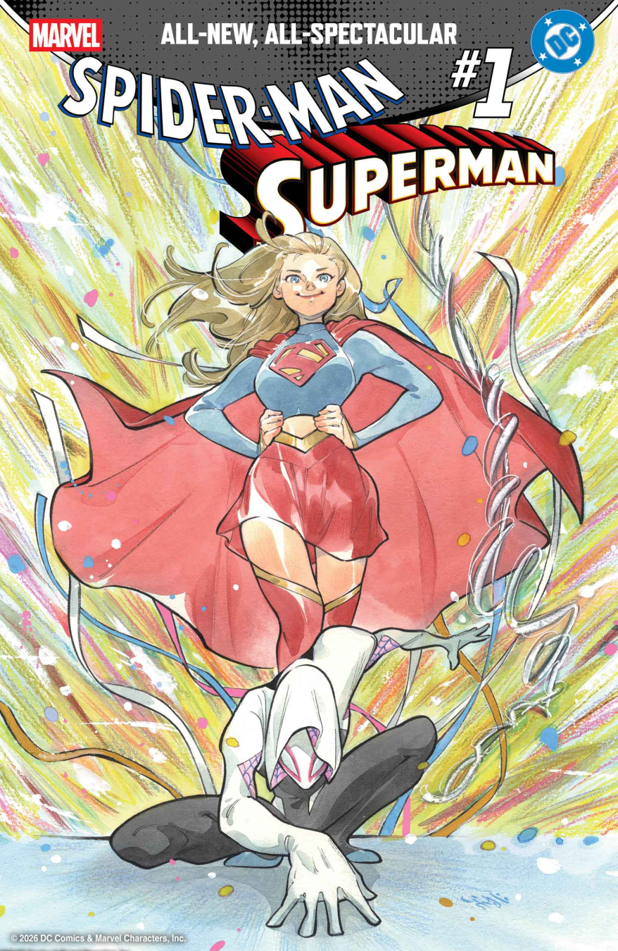 Announced last month, Marvel Comics and DC Comics join forces again this year with two new Spider-Man/Superman crossover comics celebrating the 50th anniversary of Superman vs. The Amazing Spider-Man, the first-ever Marvel/DC crossover. DC’s one-shot, Superman/Spider-Man #1, arrives in March, with Marvel’s SPIDER-MAN/SUPERMAN #1 following in April. Each will be packed with ALL-NEW stories starring Marvel’s web-slinging wall-crawler and DC’s Man of Tomorrow along with additional stories featuring more history-making Marvel/DC team-ups, including two stories for Marvel’s SPIDER-MAN/SUPERMAN #1 revealed today! Writer Stephanie Phillips and artist Phil Noto will pair Ghost-Spider and Supergirl while Jeph Loeb and Jim Cheung will deliver an additional Spider-Man/Superman team-up!