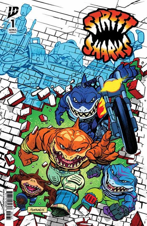 Debuting September 2025 with STREET SHARKS #1 (of five issues), the series follows the action-packed adventures of the four Bolton brothers – half-shark, half-human heroes and crime fighters. Since its debut in 1994, the Street Sharks franchise has also inspired a popular Mattel action figure line.
