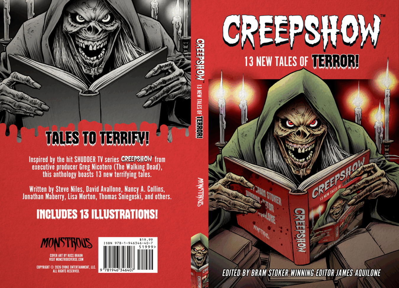 With its cutting-edge blend of horror and humor George A. Romero and Stephen King’s 1982 film Creepshow™ inspired generations of fans and launched a beloved horror franchise. Prolific special effects artist, director, and producer Greg Nicotero (Walking Dead) introduced a new generation of fans to Creepshow™ with the acclaimed 2018 Shudder TV Series. And next year, in May 2026, Bram Stoker Award-winning editor and writer James Aquilone’s Monstrous Books is launching Creepshow: 13 Tales of Terror, the first-ever short story collection inspired by the acclaimed series.